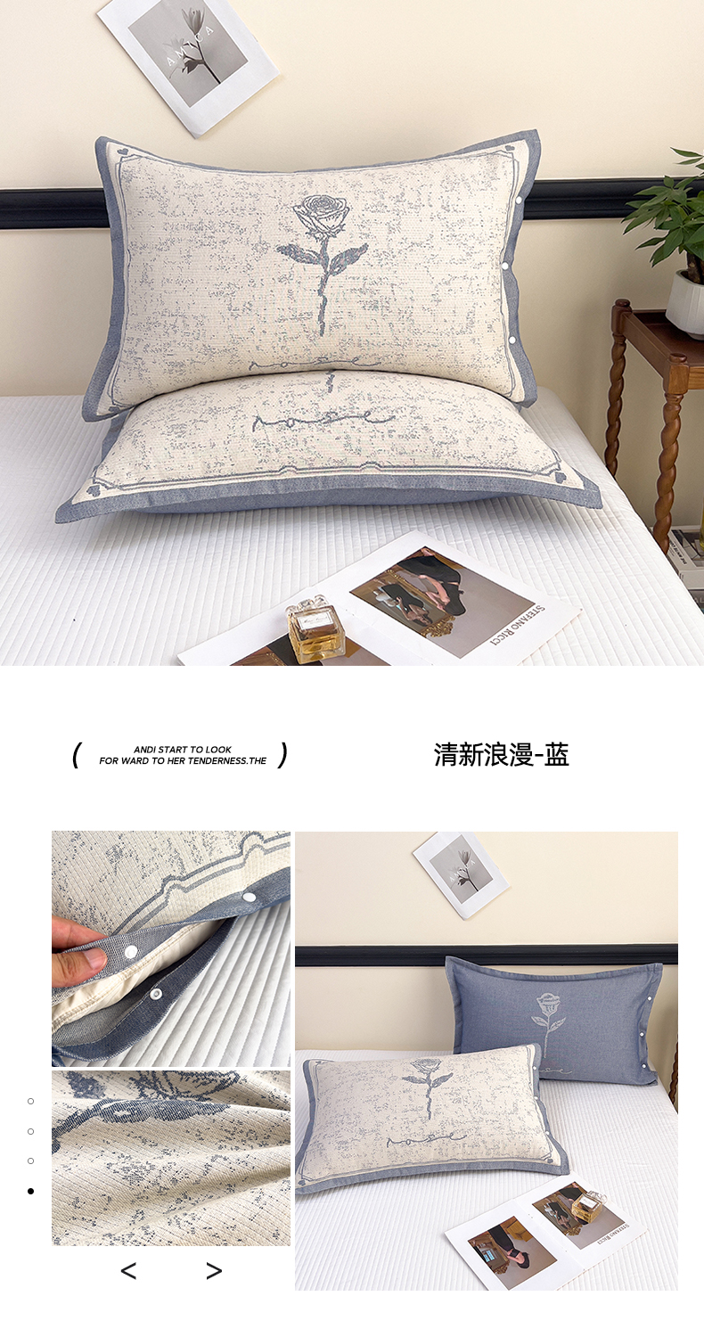 悦然毛巾被 2025新款四层纱全棉纱布枕套 清新浪漫-蓝