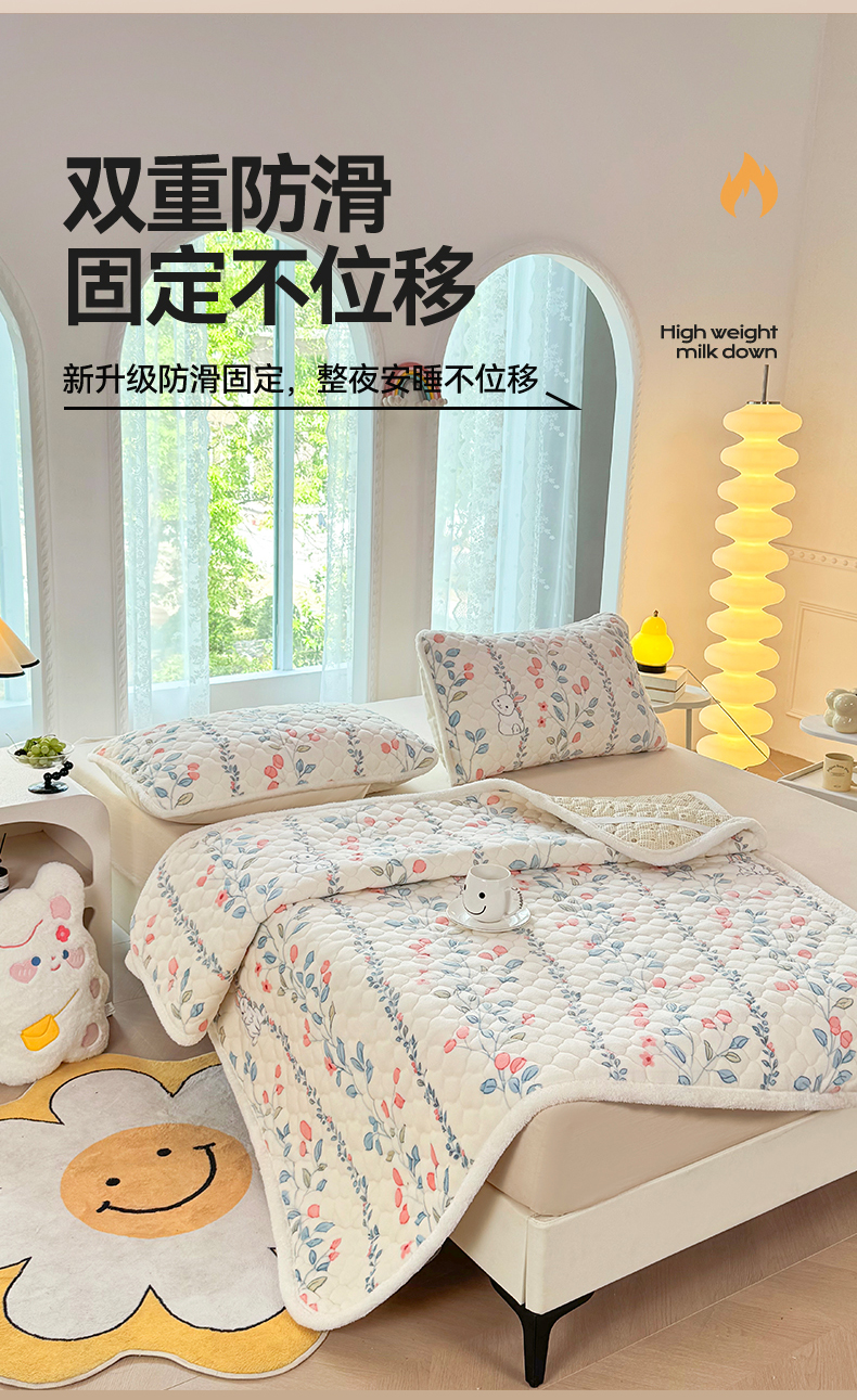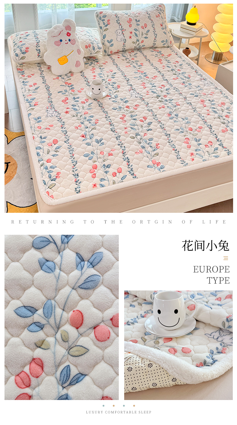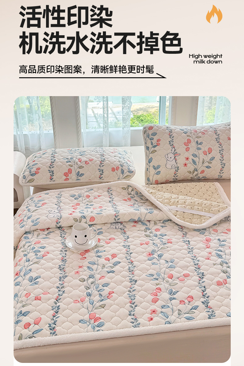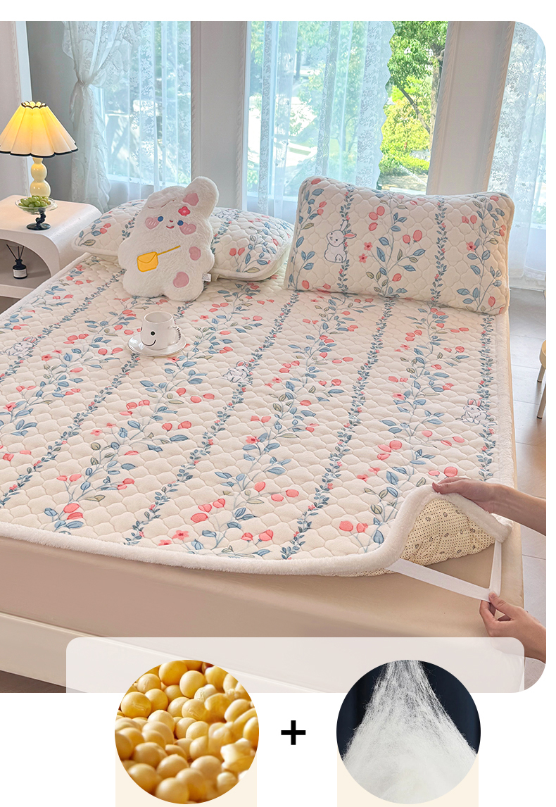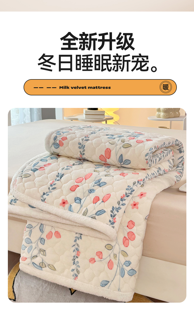 商品名称:暖芯优选 2025热款外贸跨境电商热销款冬季加厚牛奶绒印花床垫床垫学生单人宿舍上下铺 花间小兔
