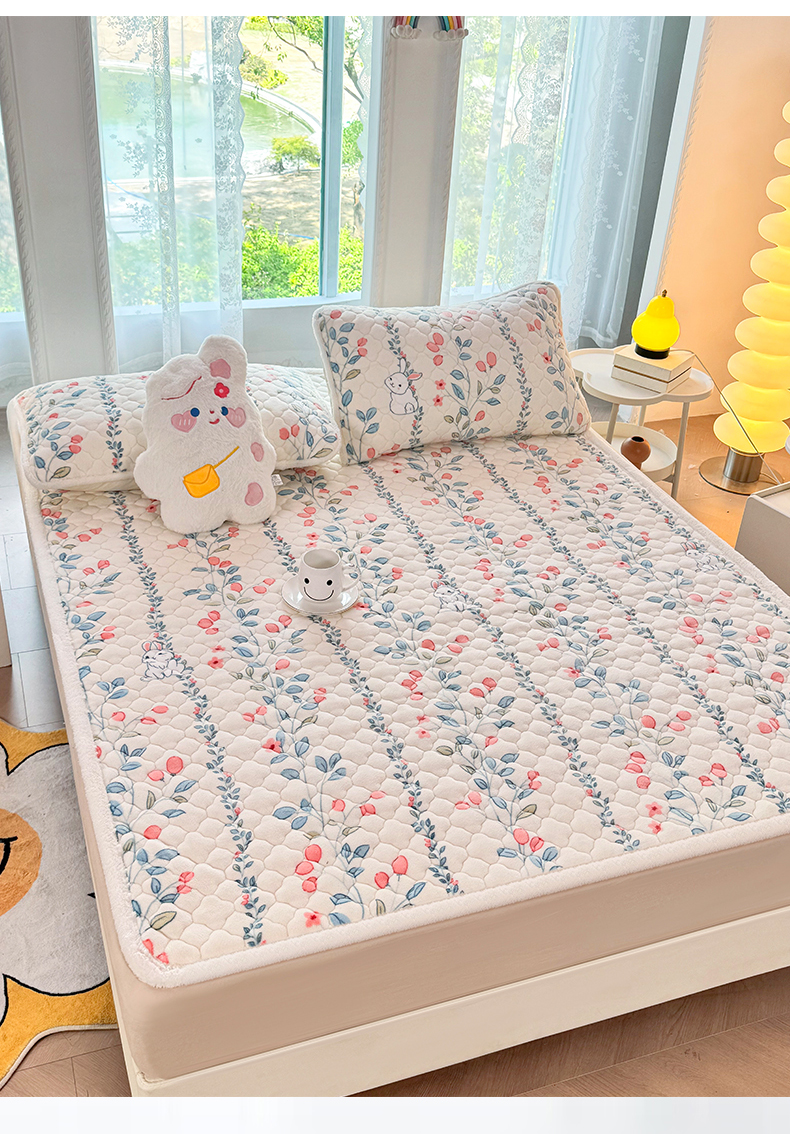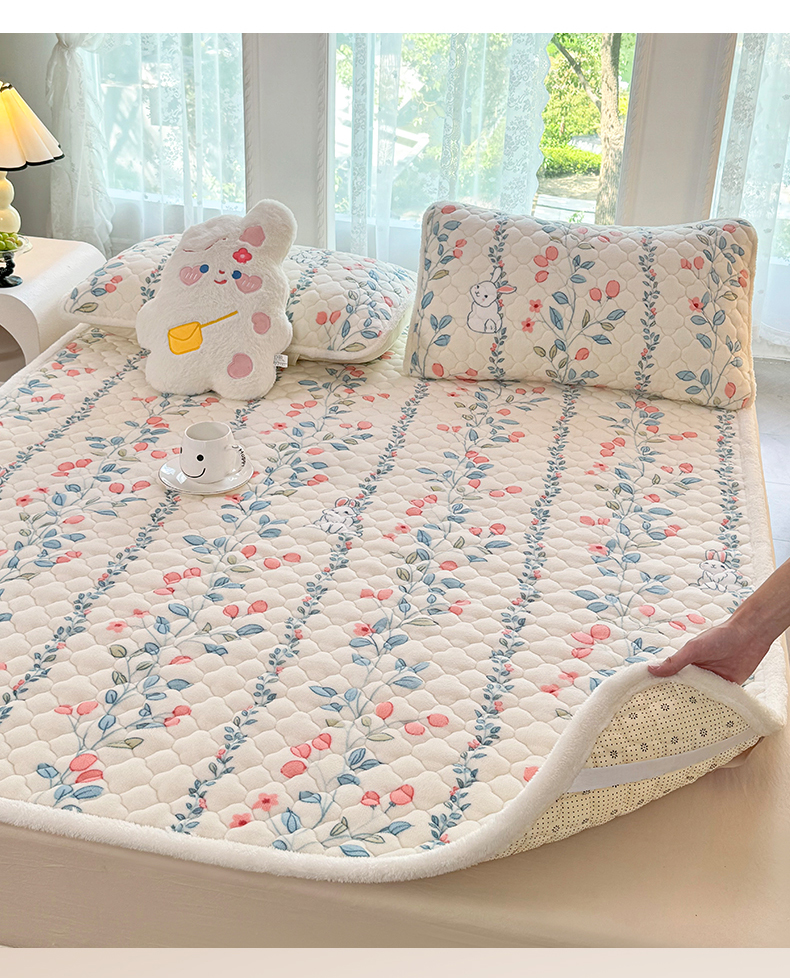 床垫/床褥 > 暖芯优选 2025热款外贸跨境电商热销款冬季加厚牛奶绒印花床垫床垫学生单人宿舍上下铺 花间小兔