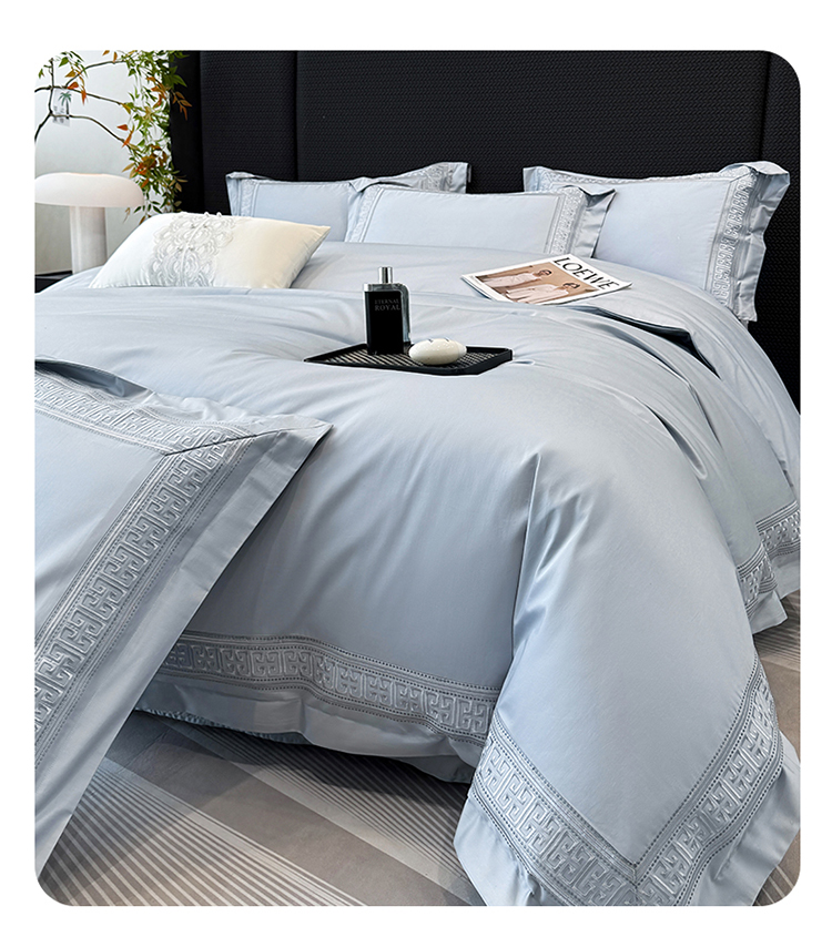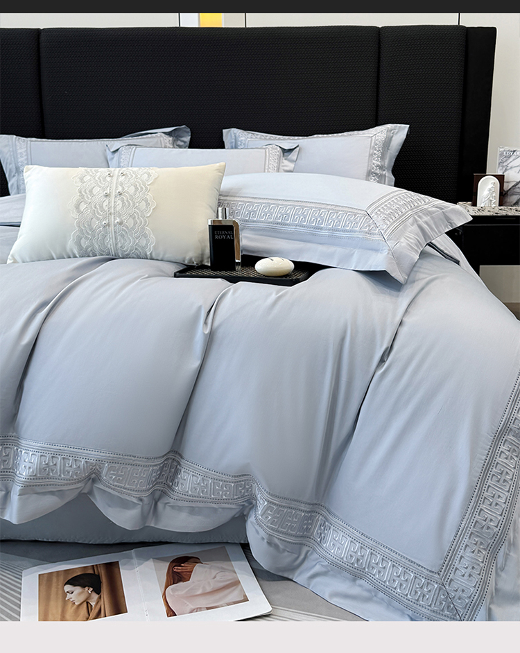 当前位置: 91家纺网 > 商品网购 > 床品套件 > 四件套 > 长绒棉四件套 > 高档礼盒装50*50S贡缎长绒棉刺绣花四件套100%纯棉全棉床单床笠款量大价优 瓷器蓝-丽思兰顿-A类贡缎长绒棉