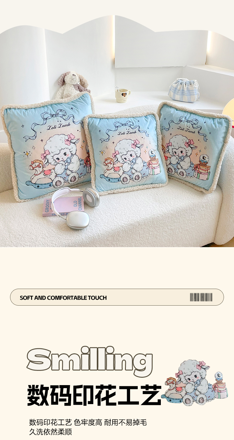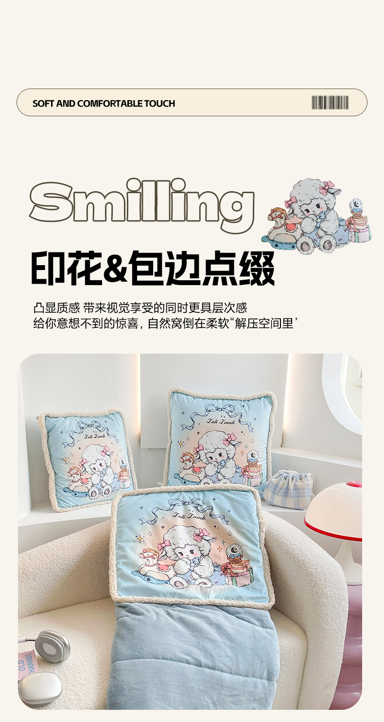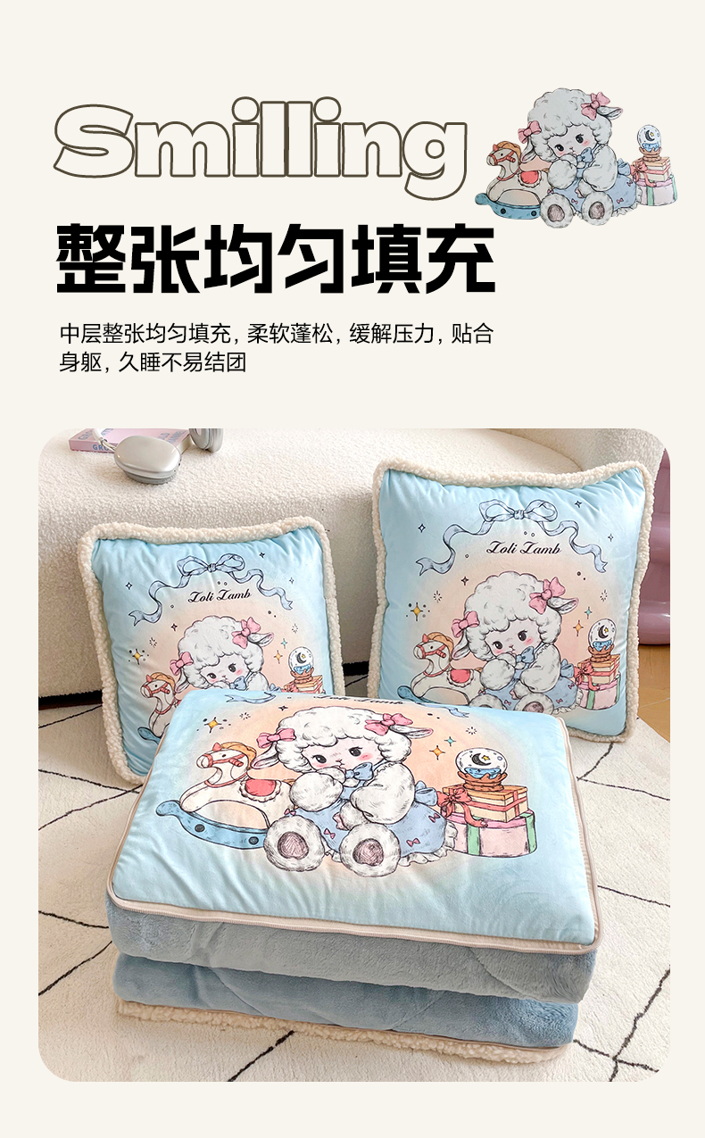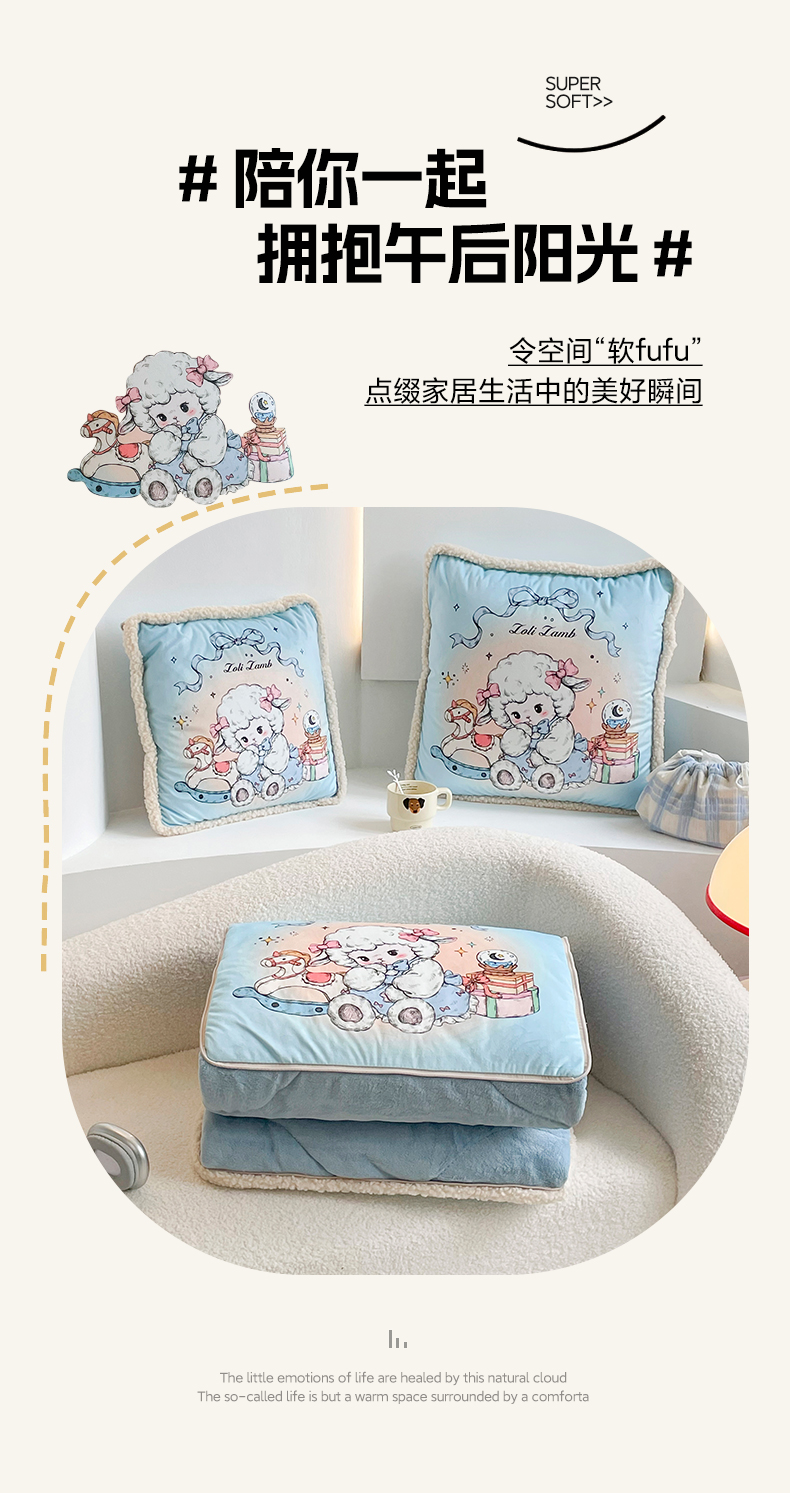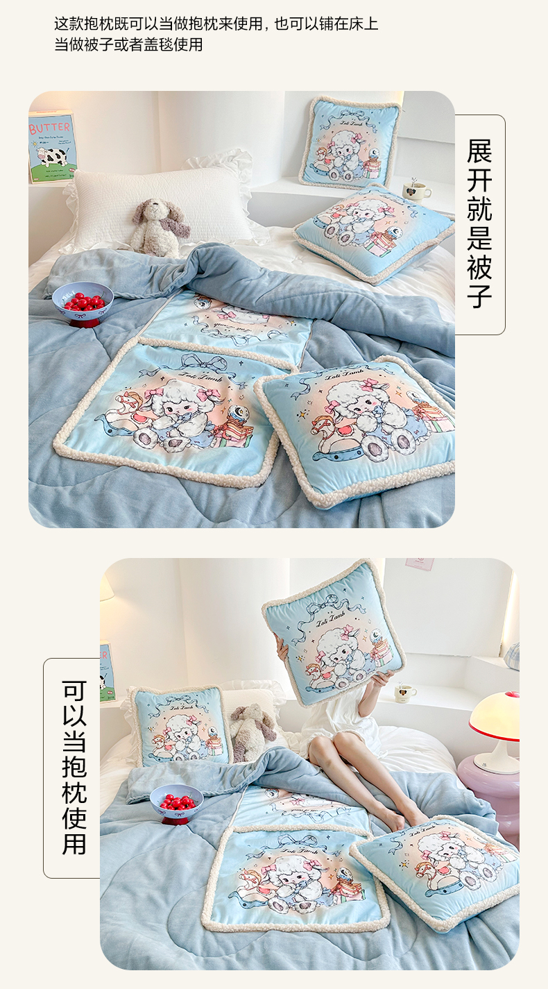 番茄+ 2025新款羊羔毛花边绒抱枕被 美羊羊