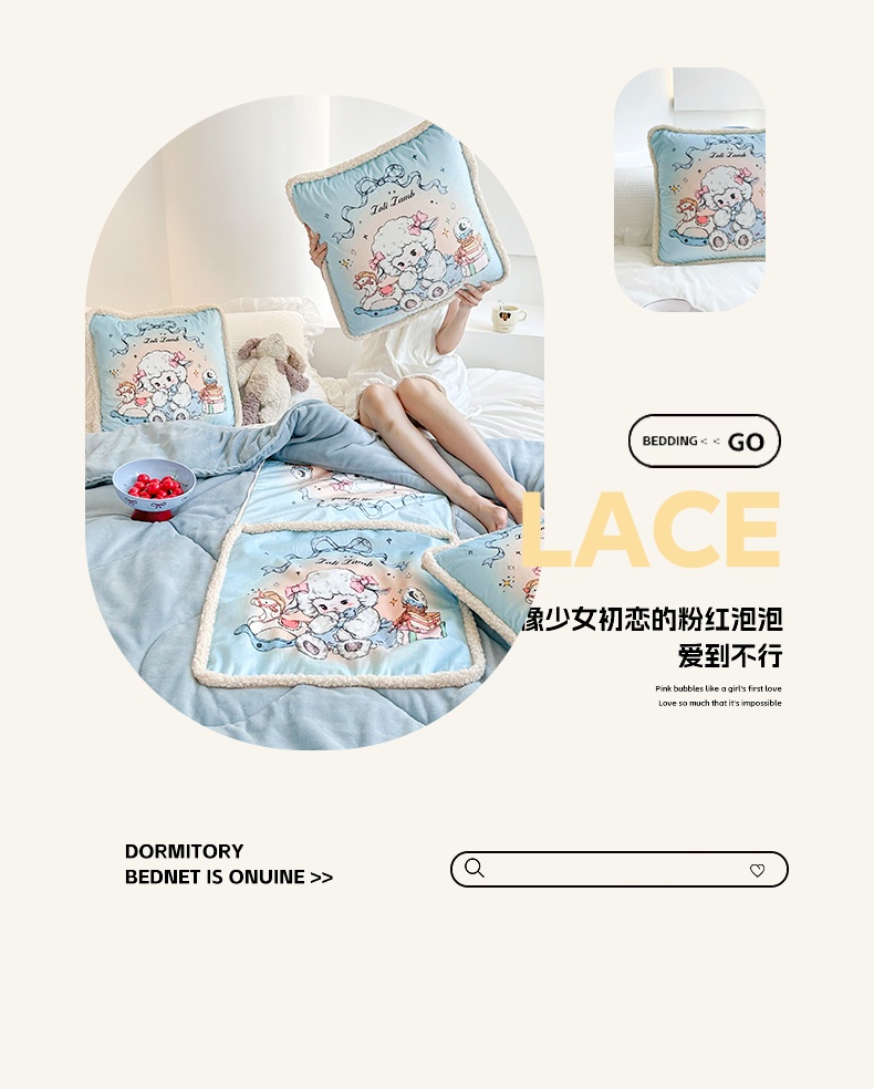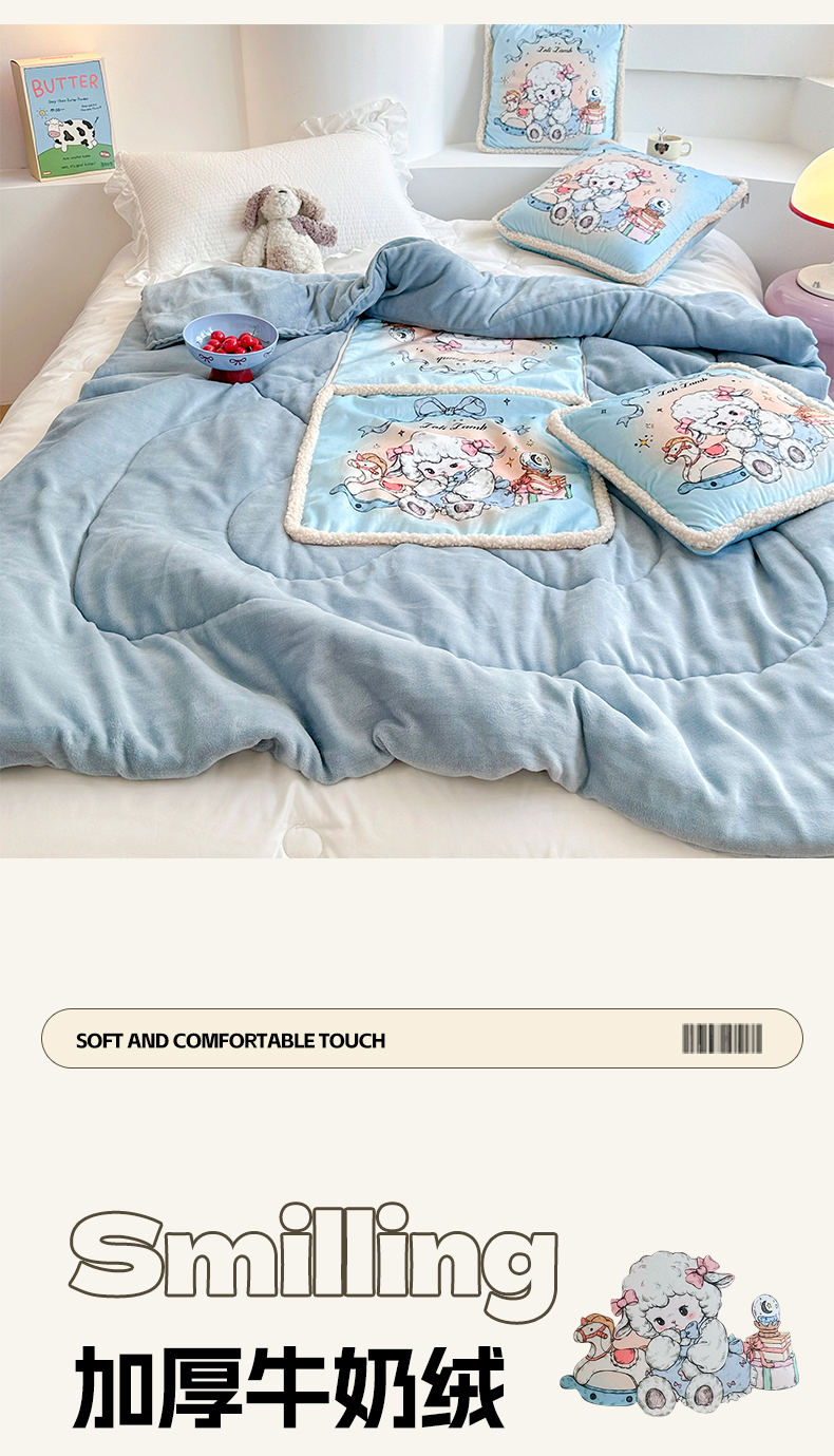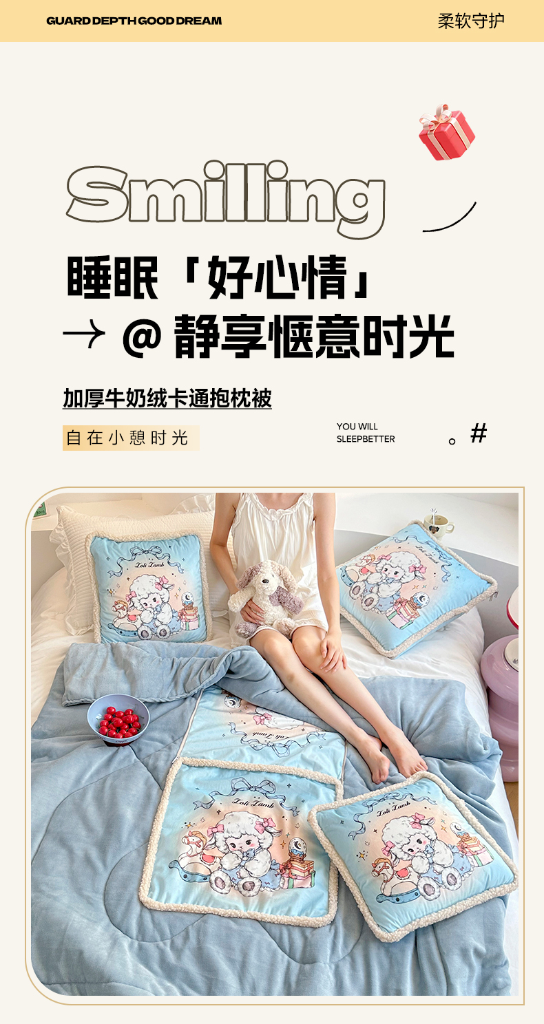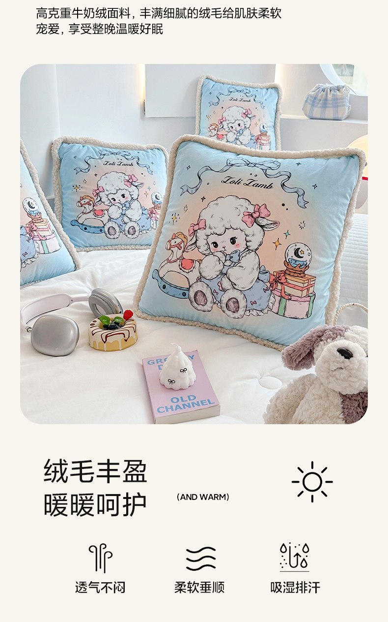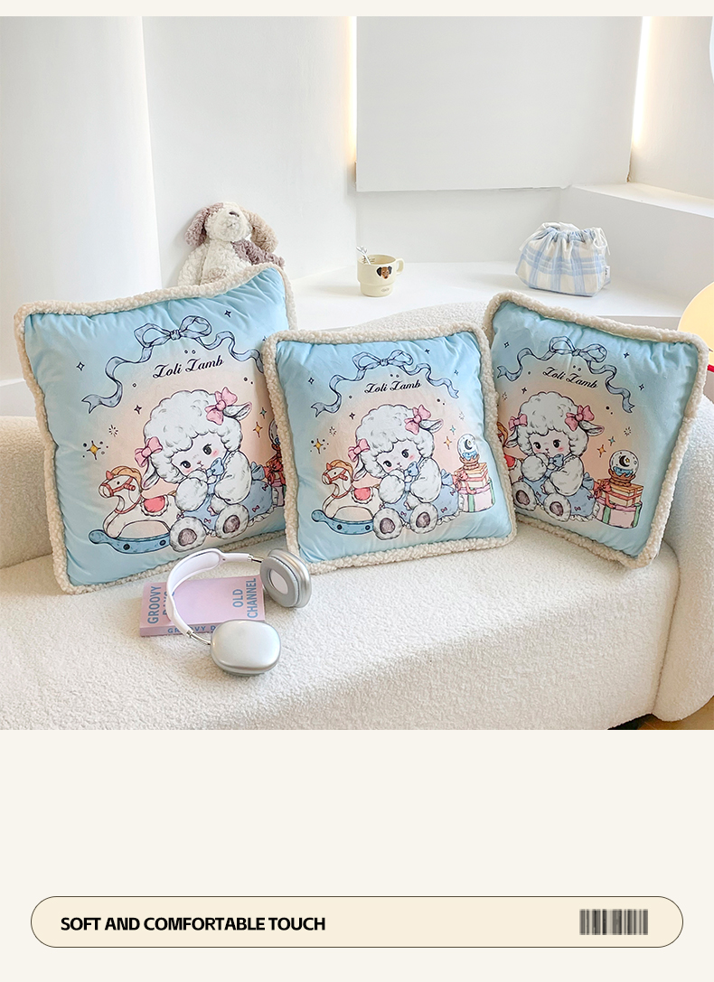 番茄+ 2025新款羊羔毛花边绒抱枕被 美羊羊
