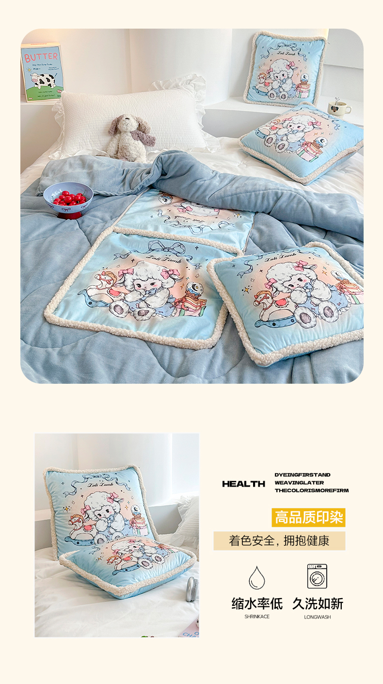 商品名称:番茄+ 2025新款羊羔毛花边绒抱枕被 美羊羊