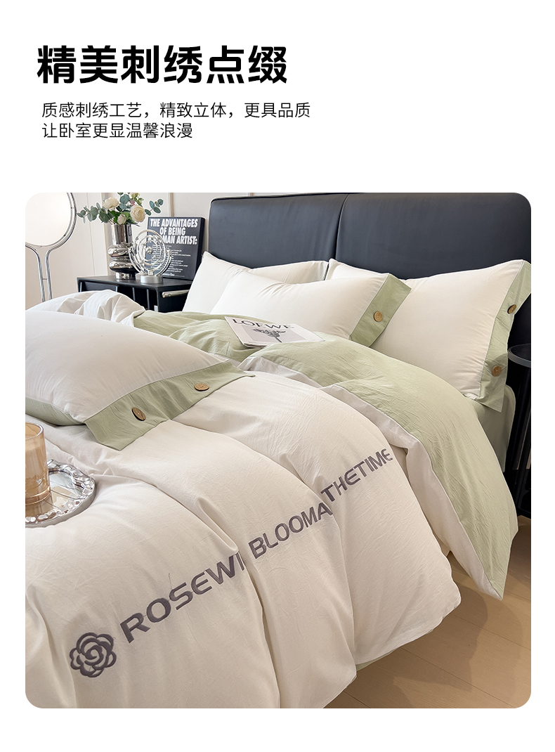 商品名称:(总)芃成家纺 2025新款A类全棉色织水洗棉纽扣绣花四件套