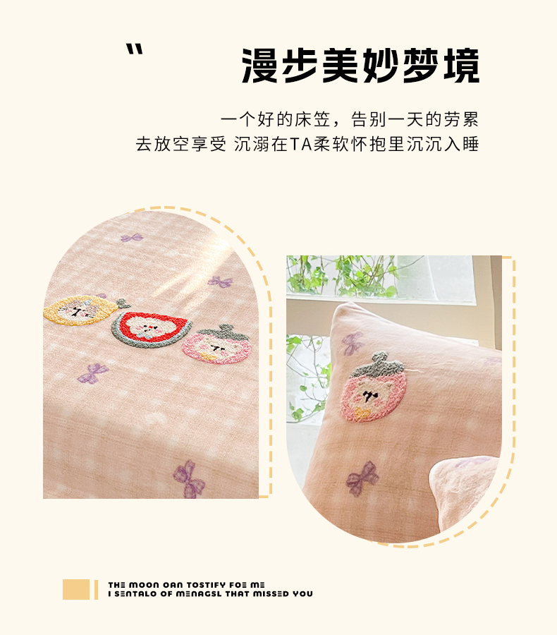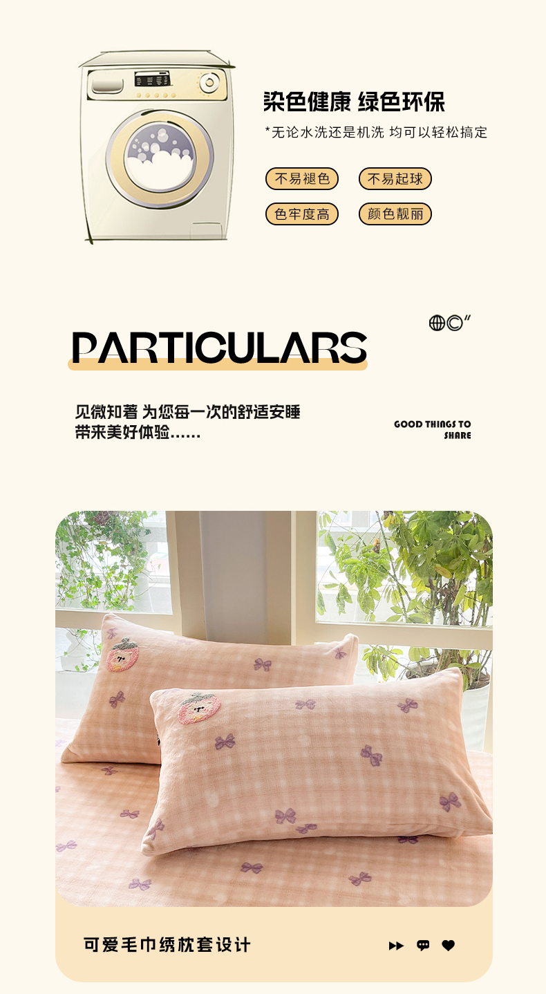 商品名称:佳汐蓝家纺 2025新款秋冬220克毛巾绣绣牛奶绒床笠三件套 水果时光