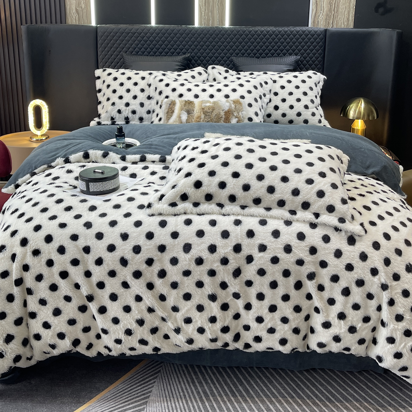 奈萝家纺 2025新款秋冬加厚皮草级兔绒牛奶绒四件套 圆点咖