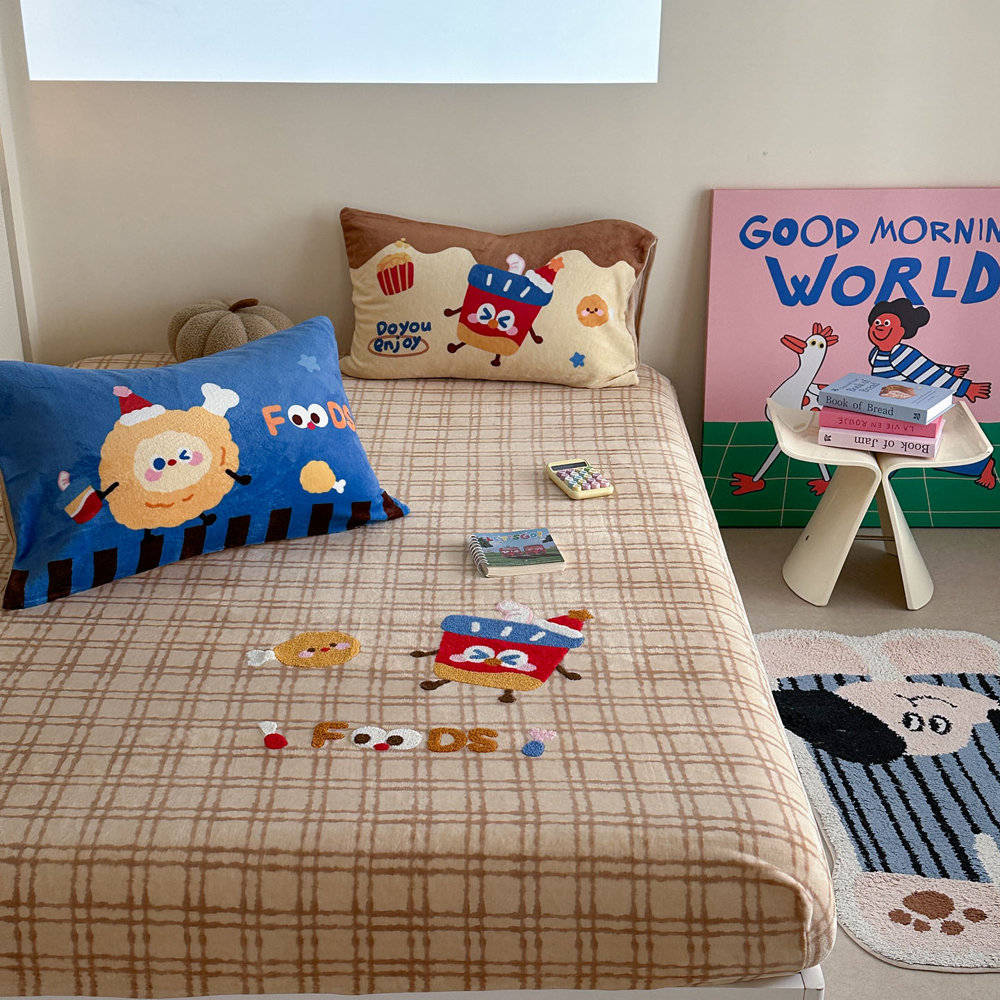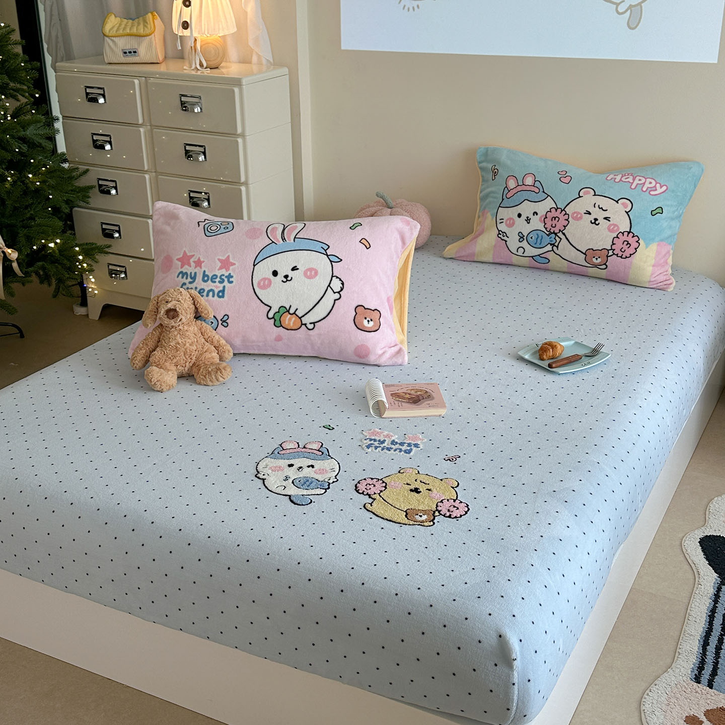(总)柚子YOUTH 2025新款双面泰迪绒毛巾绣四件套,甜甜圈,快乐企鹅,森林聚会,甜酷KT,小茄子,雪人王国