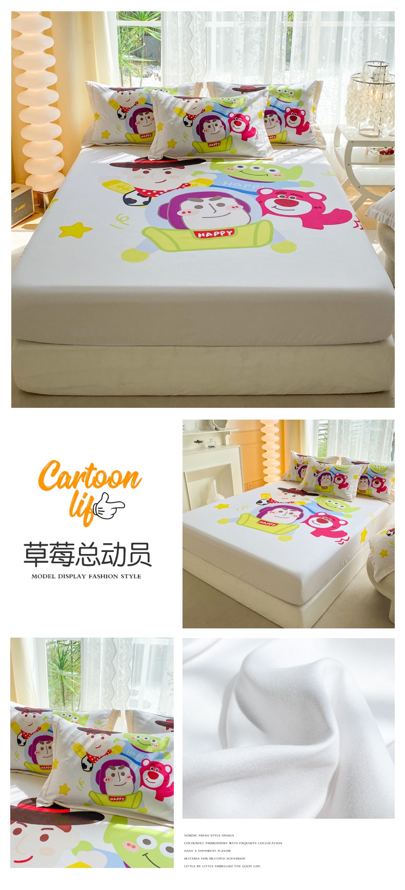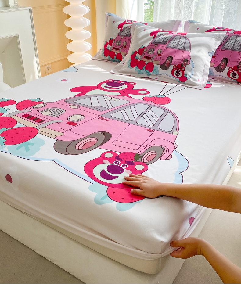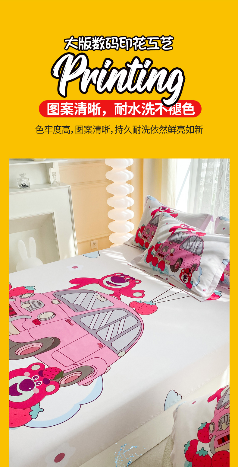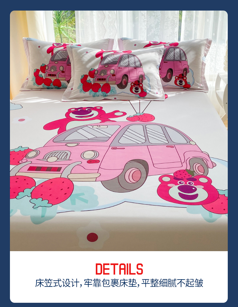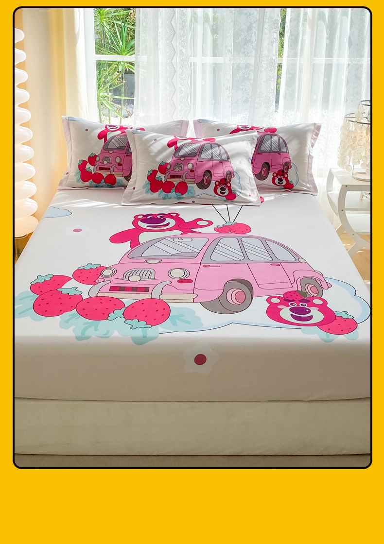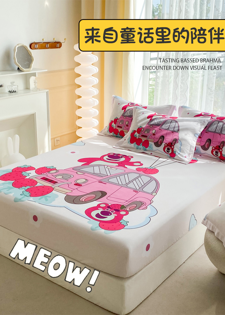 • 91家纺网 家纺一手货源 找家纺 一电 2024新款卡通床单床笠棕垫床套防尘罩席床垫保护套卡通儿童上下床床单床笠-第三批 汽车草莓熊