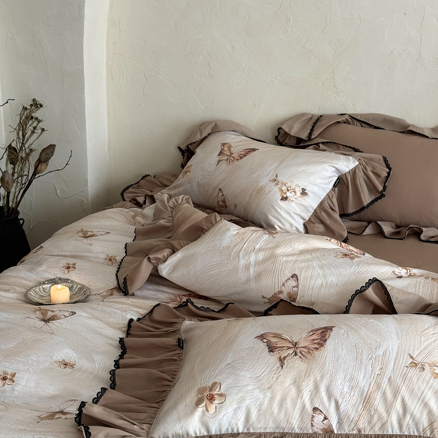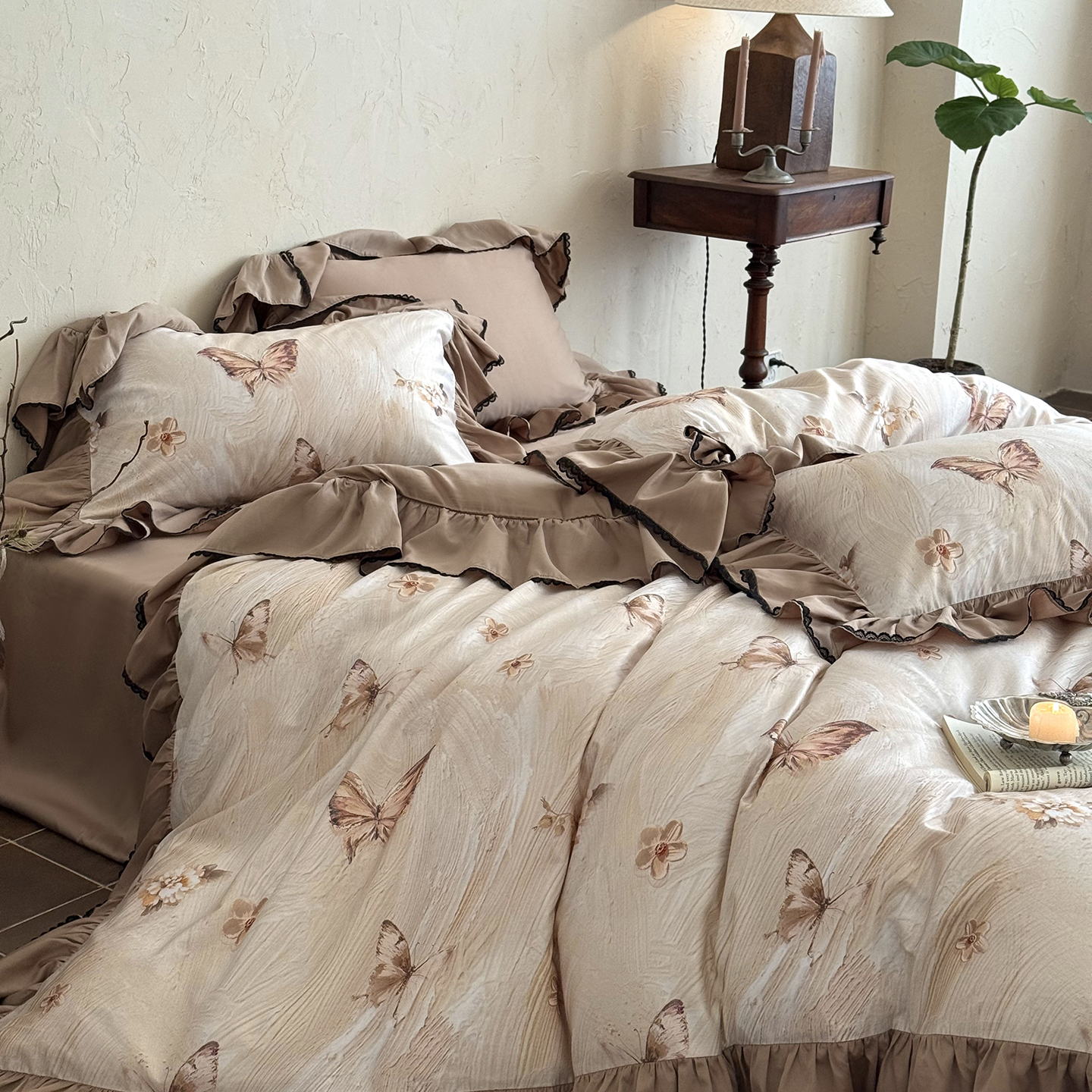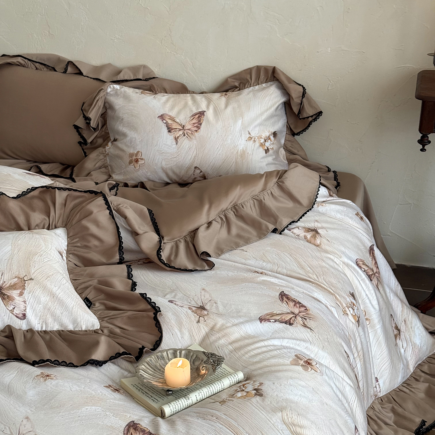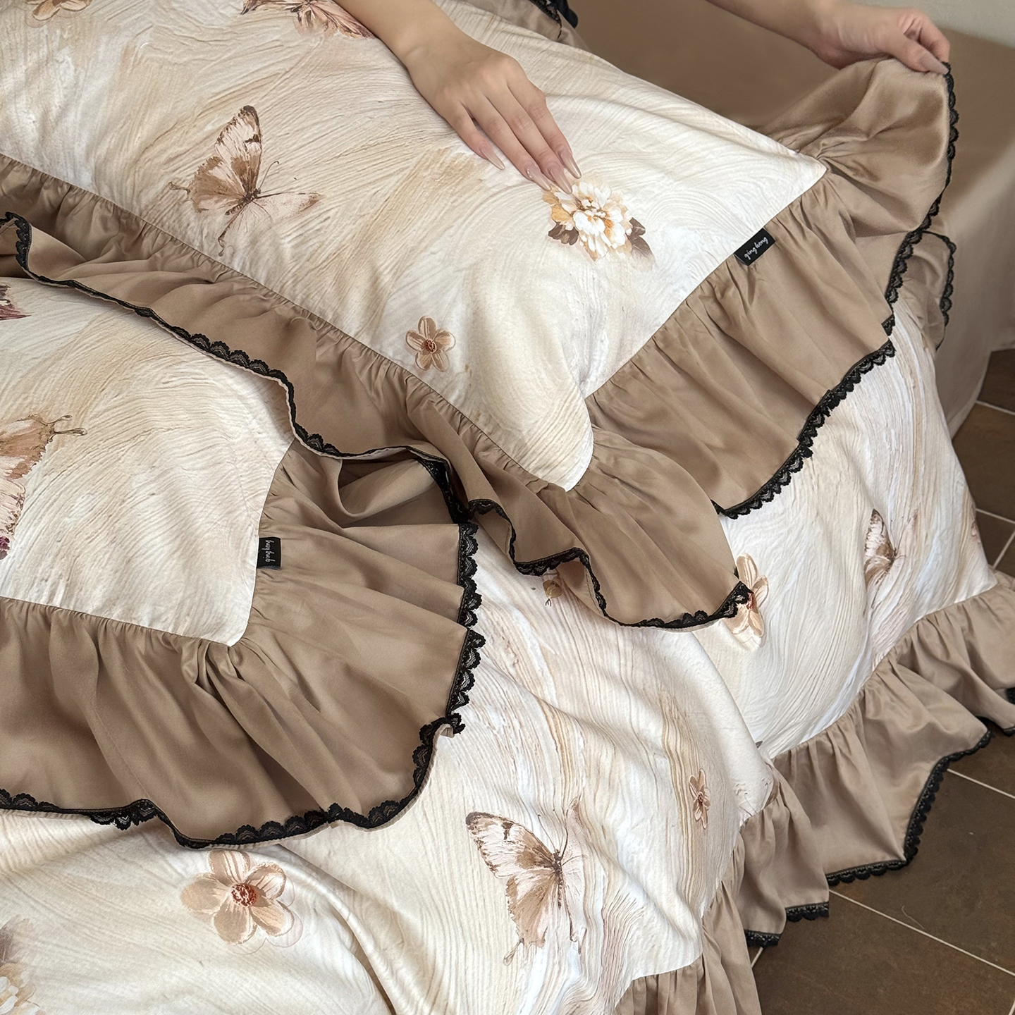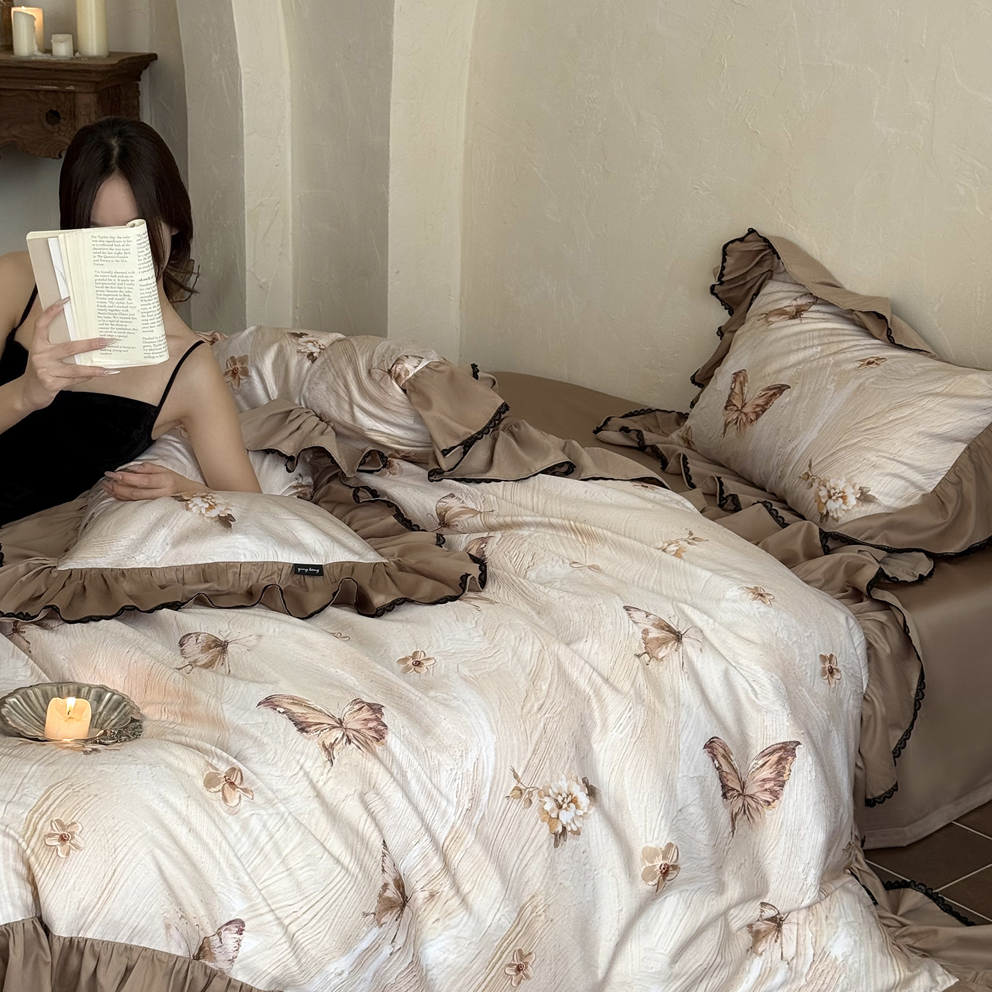 (总)佳汐蓝家纺 2025秋冬新品天丝棉磨毛数码印花+复古花边四件套--画蝶