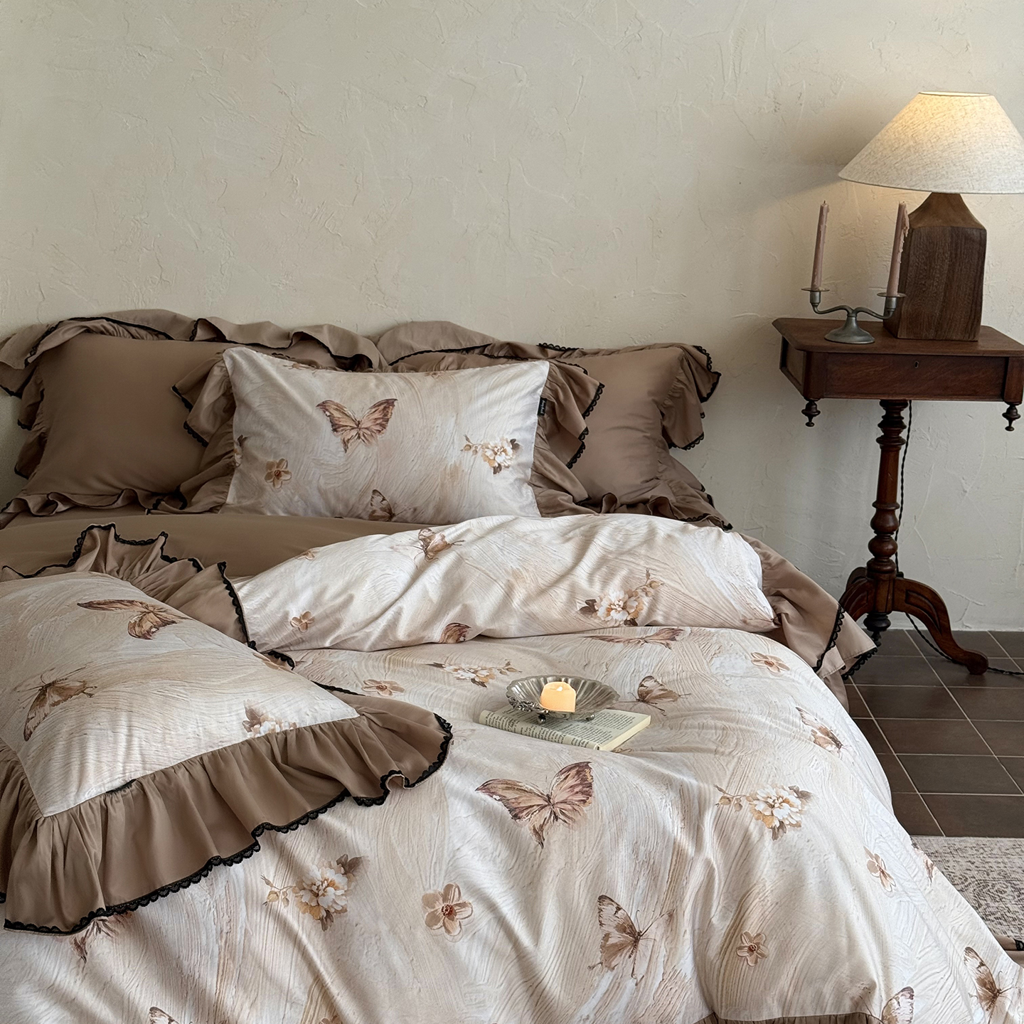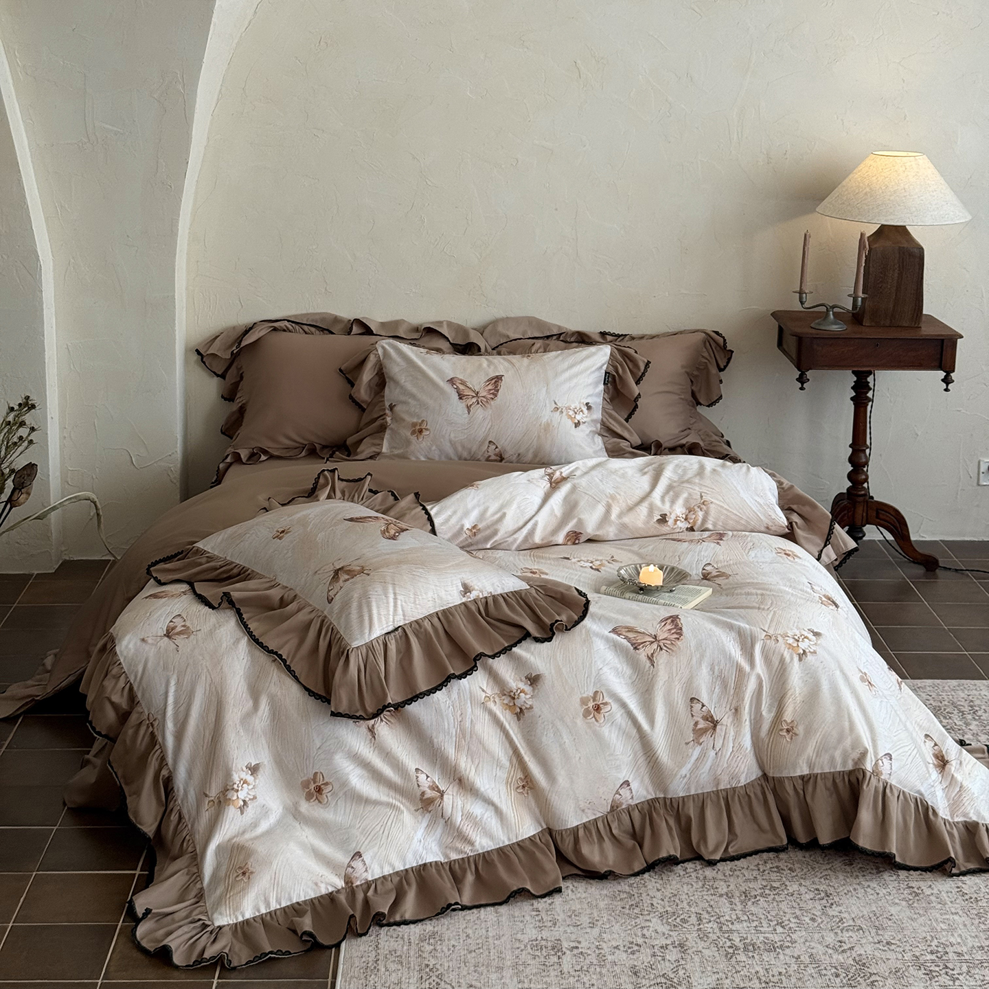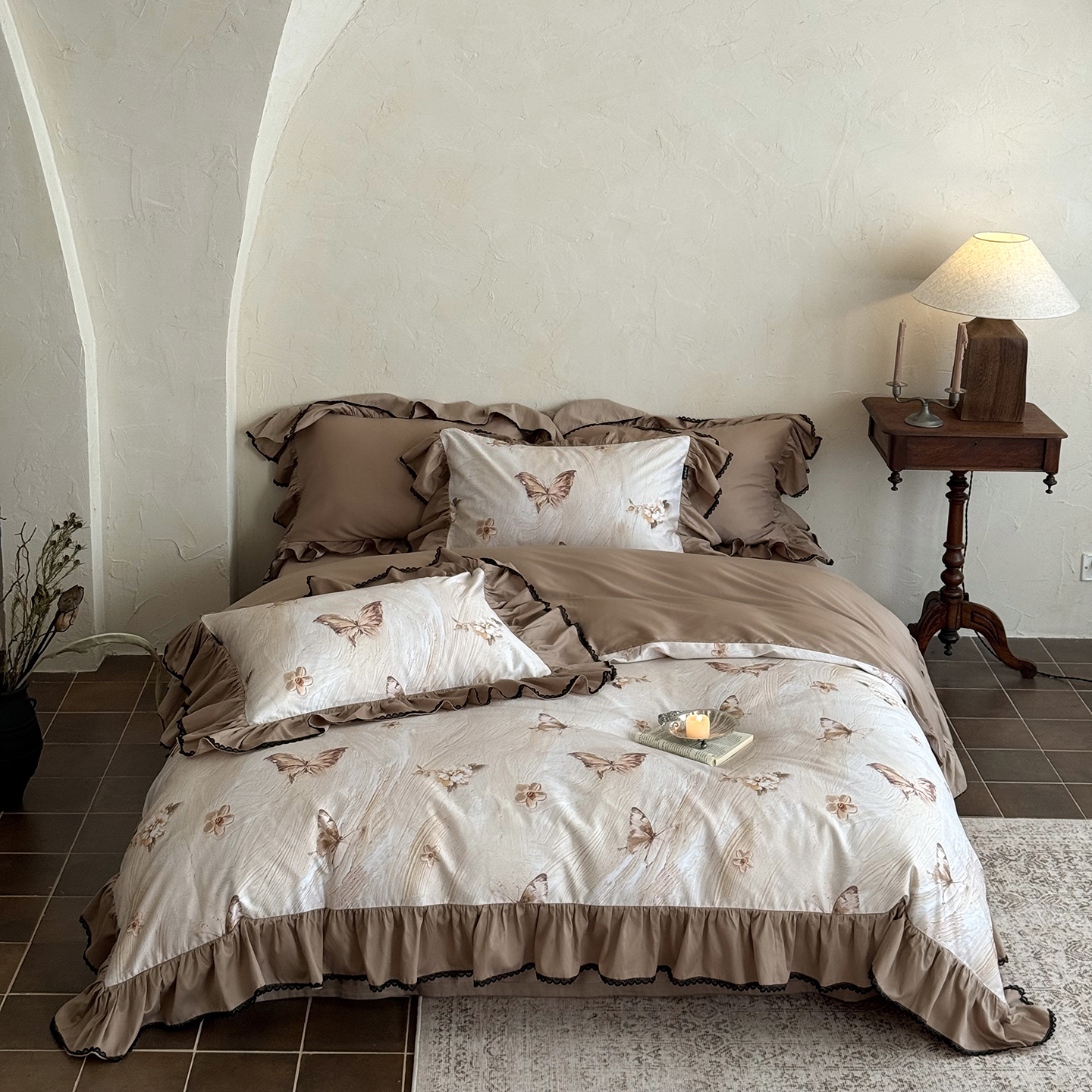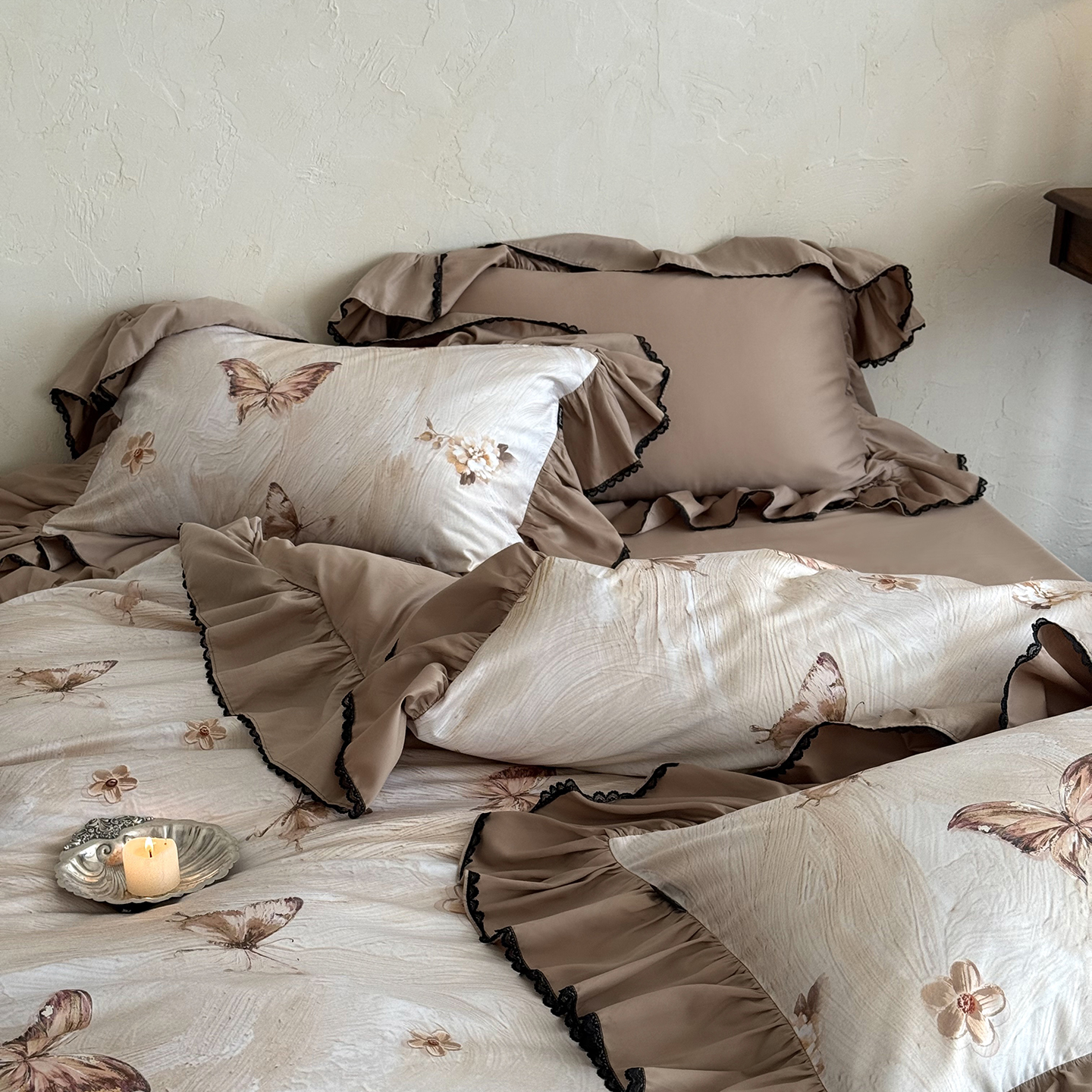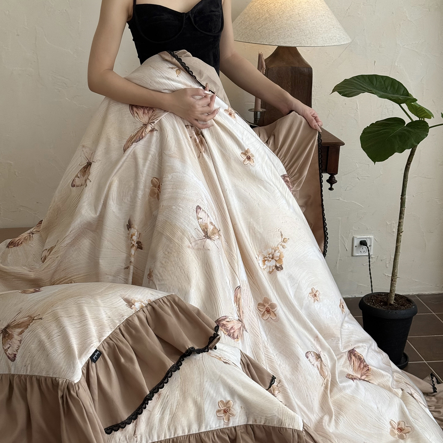 (总)佳汐蓝家纺 2025秋冬新品天丝棉磨毛数码印花+复古花边四件套--画蝶