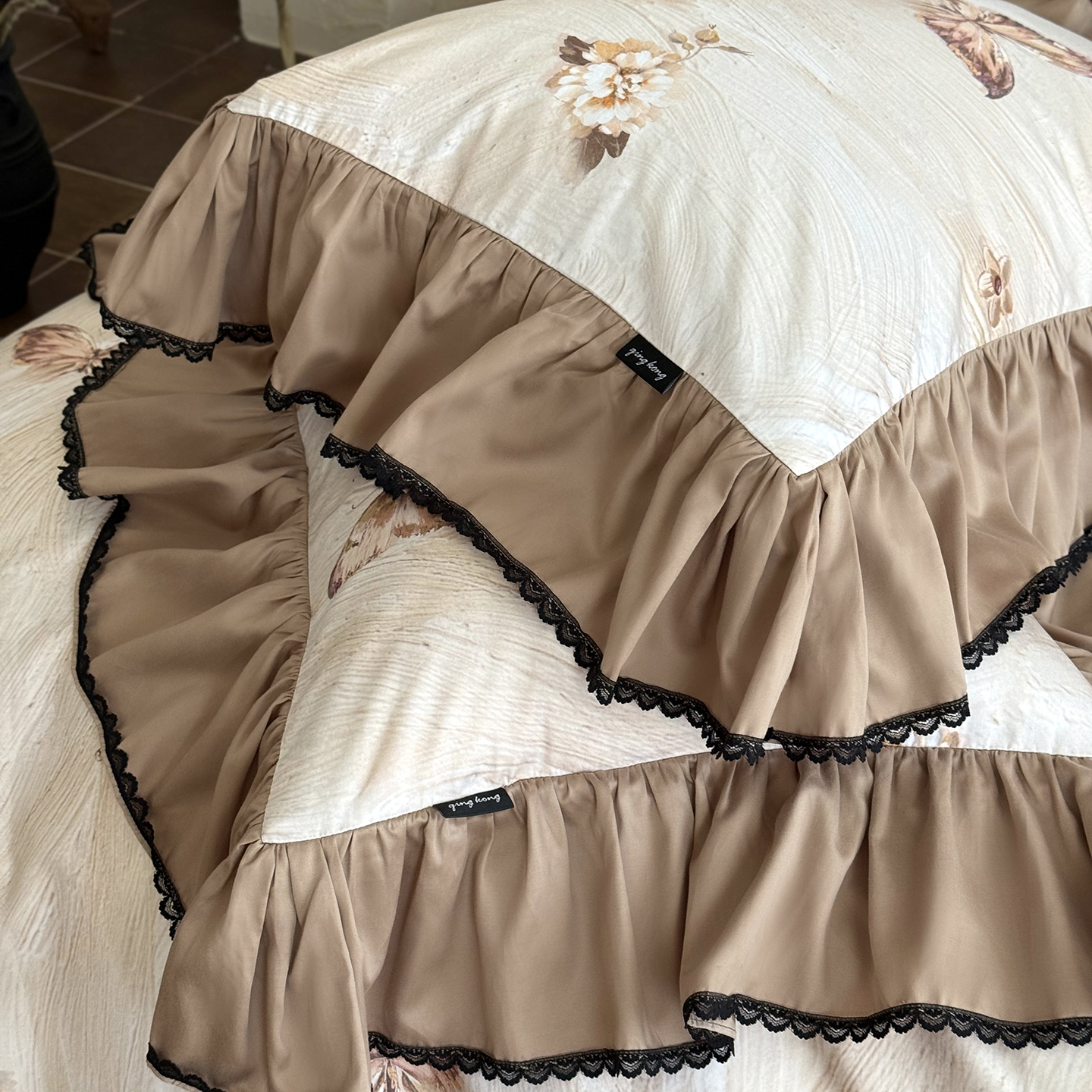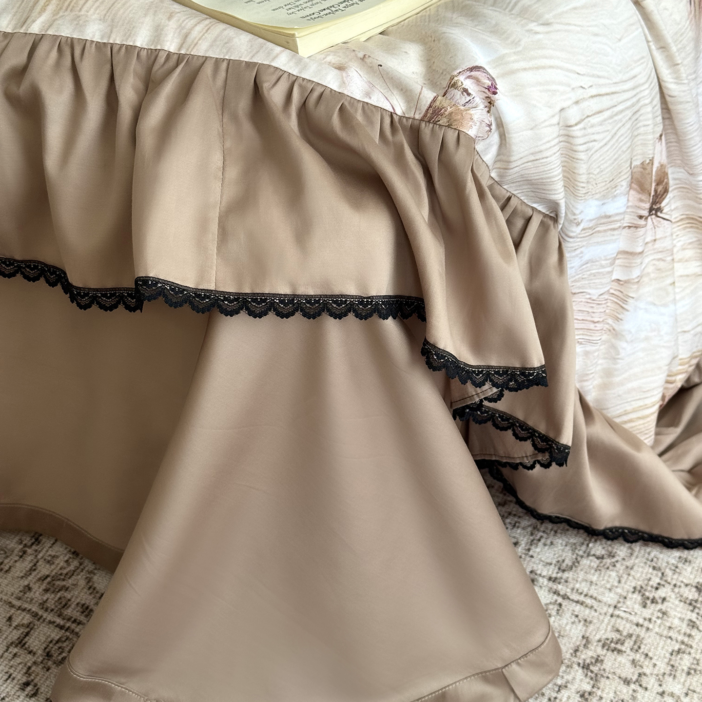 (总)佳汐蓝 2025春夏新品双层皱皱纱刺绣+织带+荷叶边四件套--白茶花,奶白,曲奇