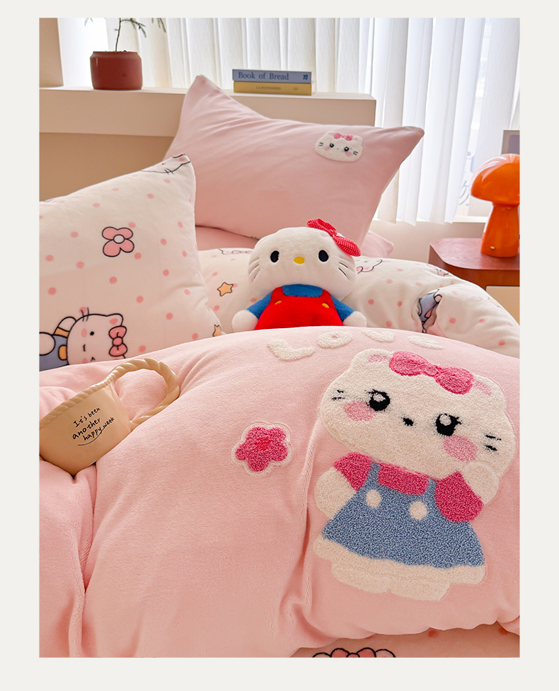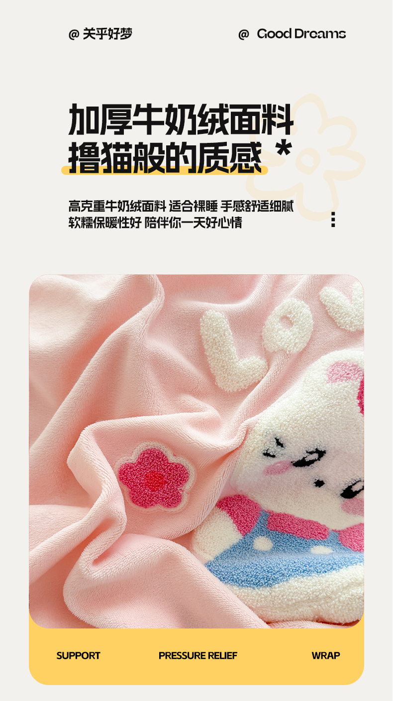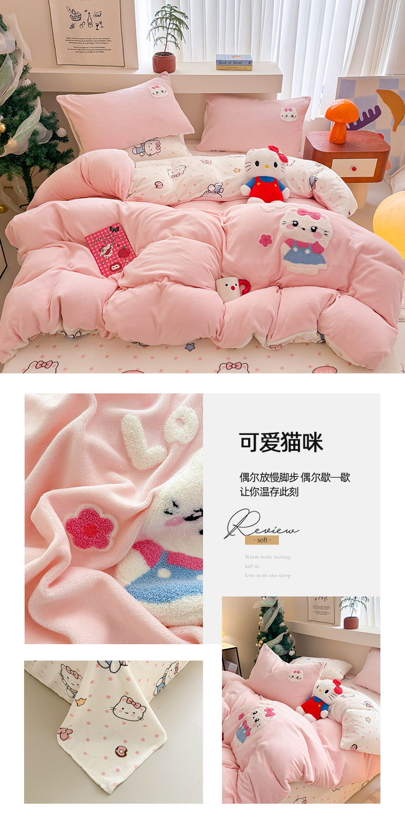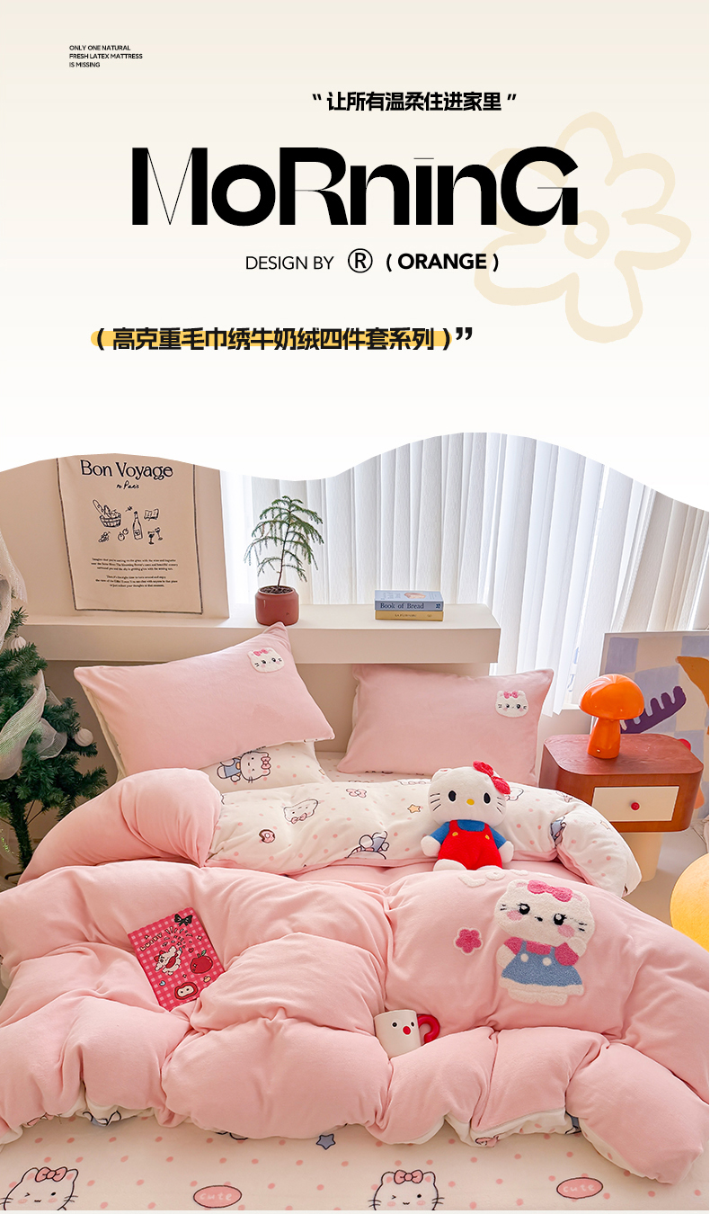 商品名称:艾特你 2025新款毛巾绣200克牛奶绒卡通毛巾绣四件套 可爱猫咪