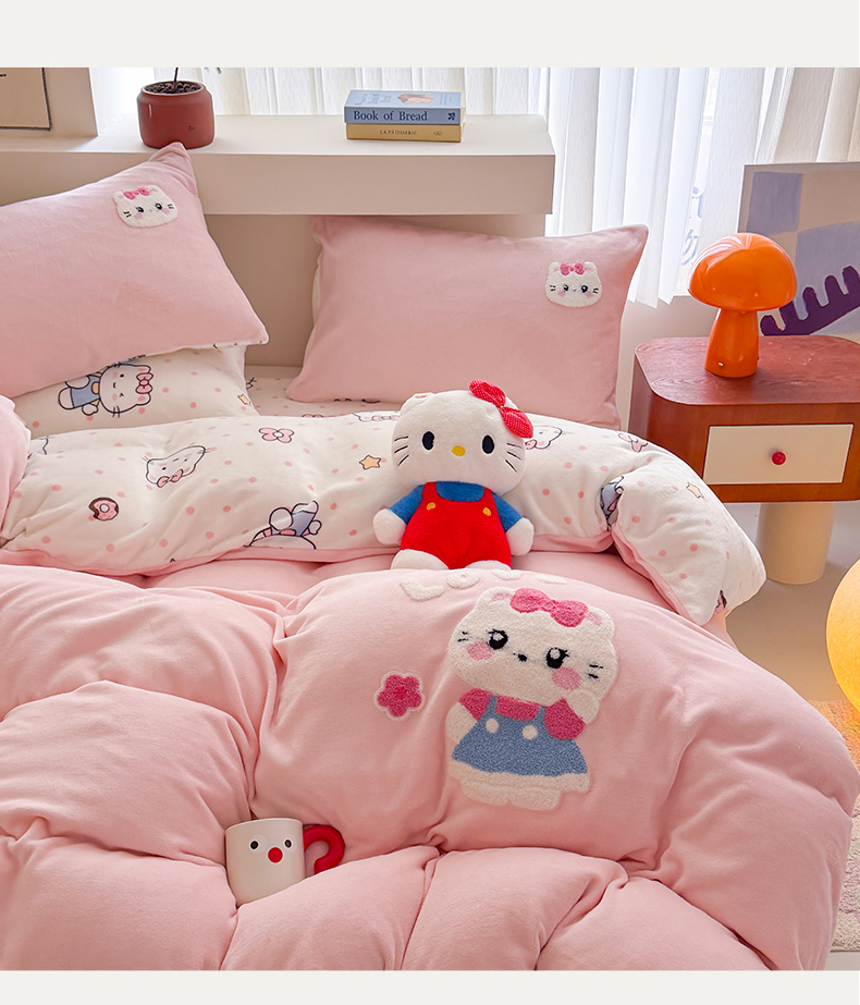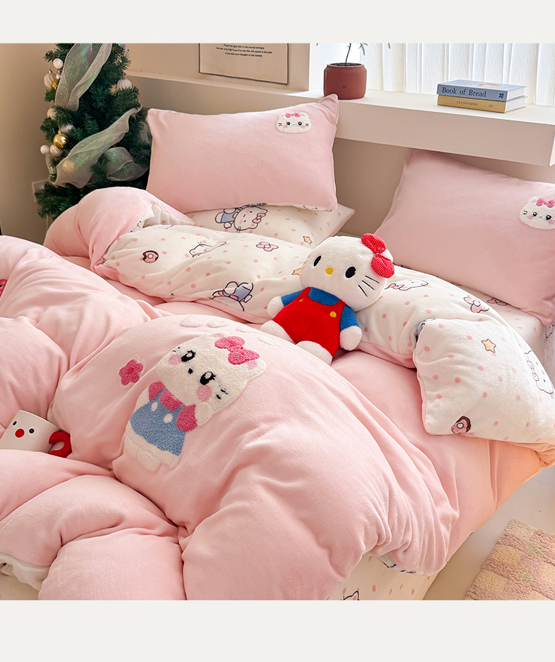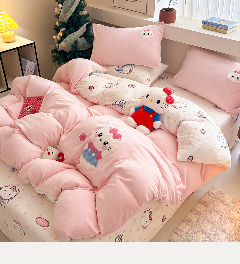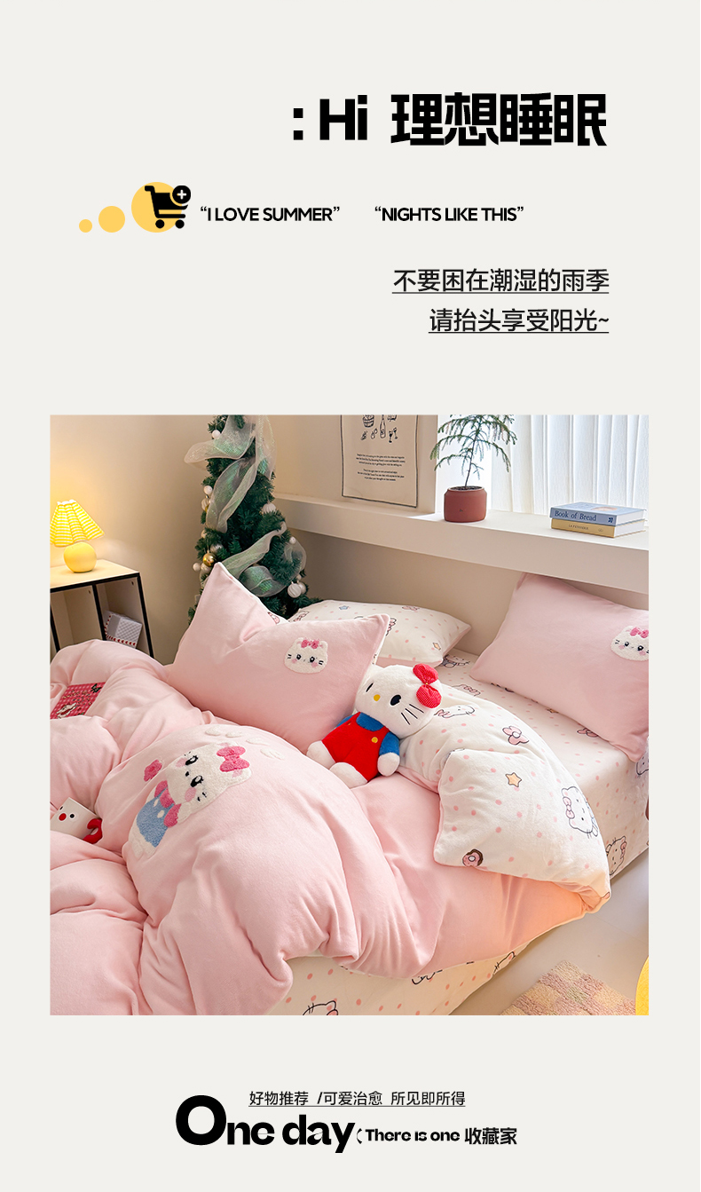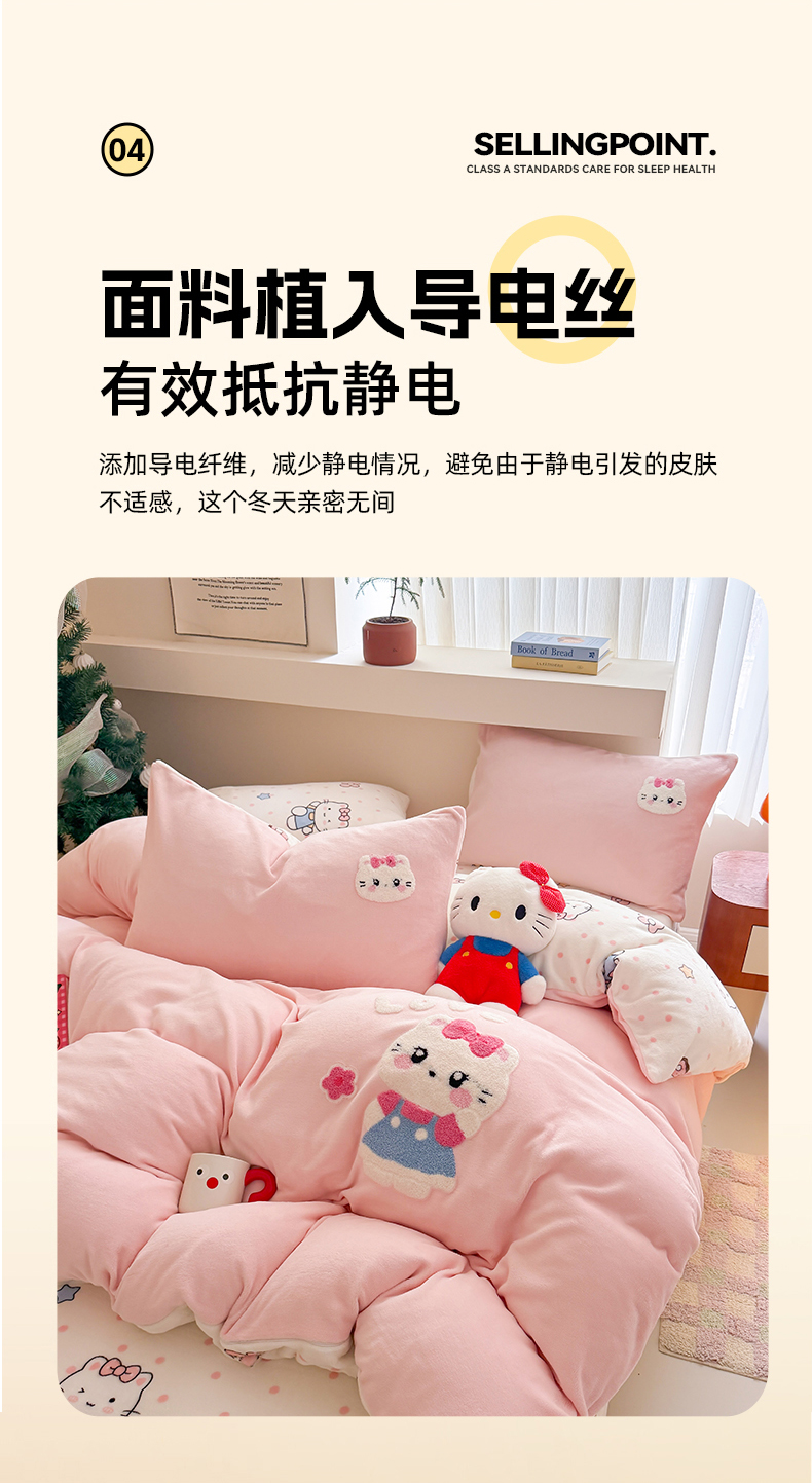 商品名称:艾特你 2025新款毛巾绣200克牛奶绒卡通毛巾绣四件套 可爱猫咪