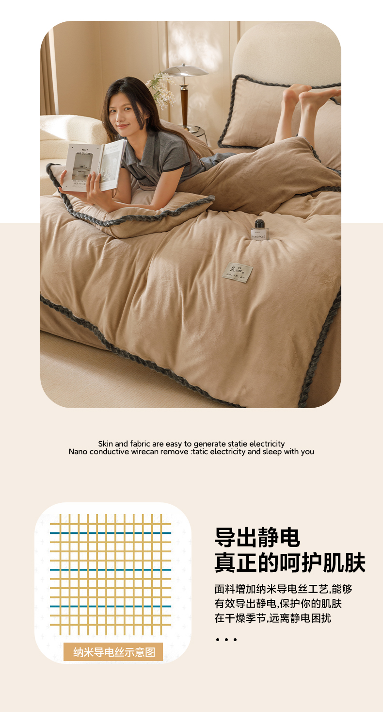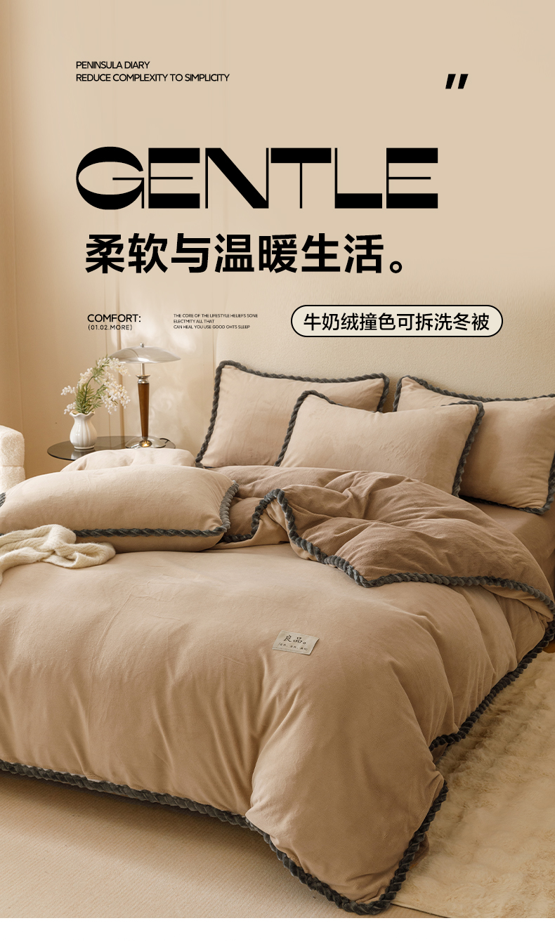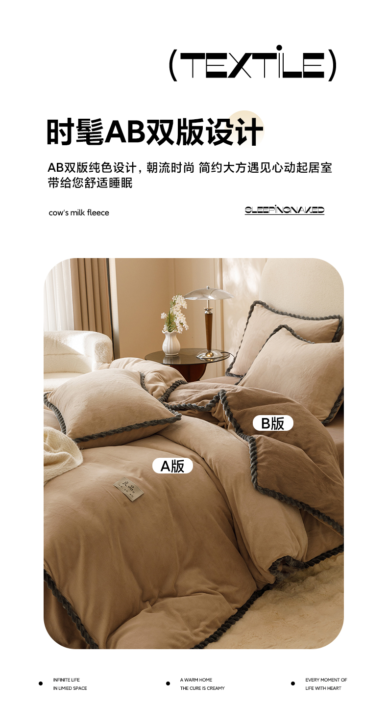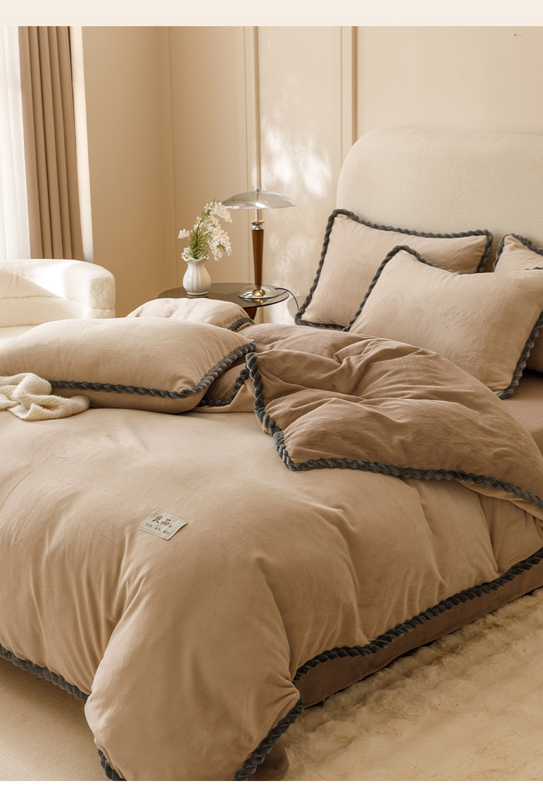 • 91家纺网 家纺一手货源 找家纺 早晨家纺 2025新款纯色双拼牛奶绒-可拆卸冬被 双拼米驼+奶茶咖