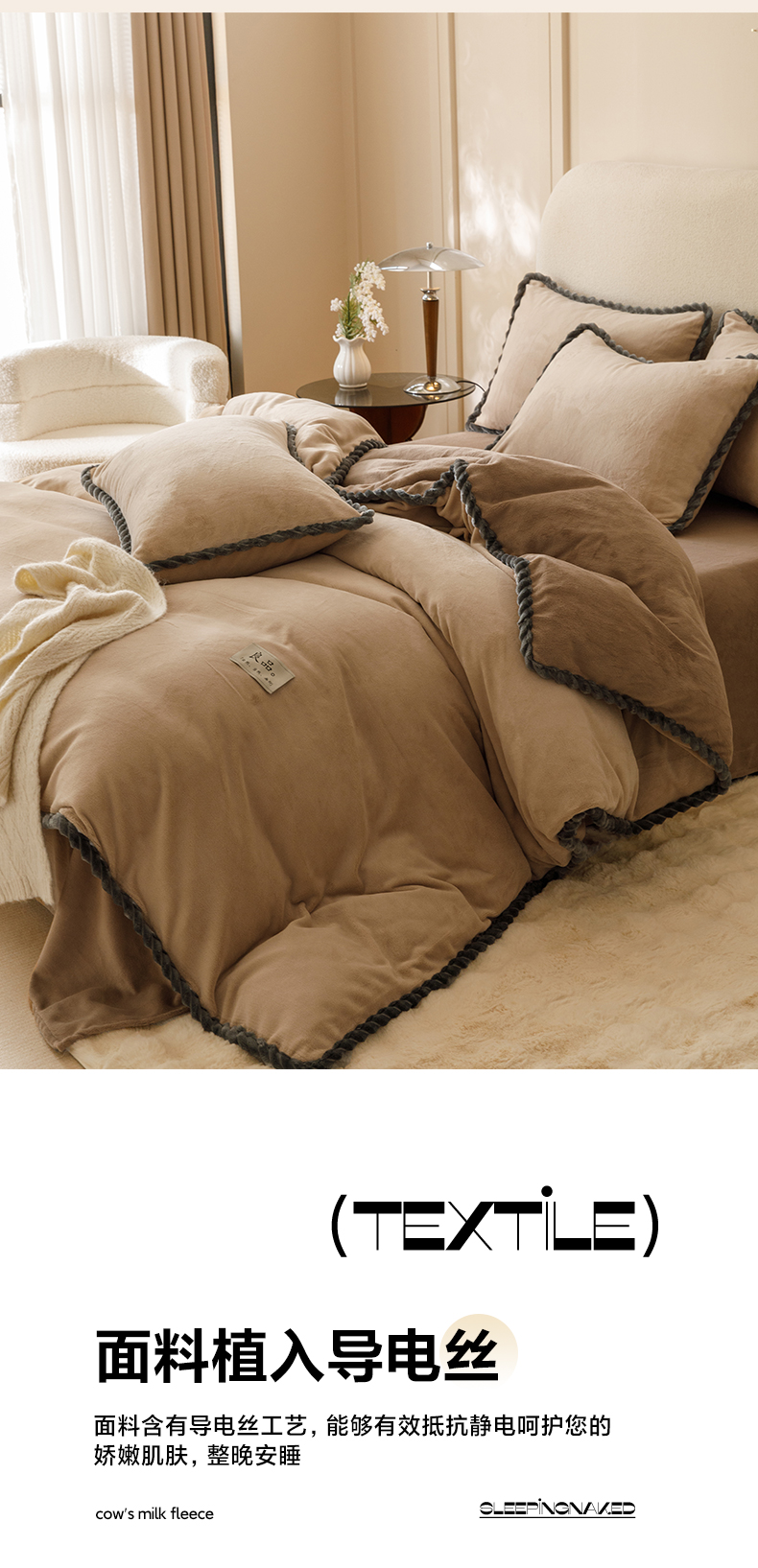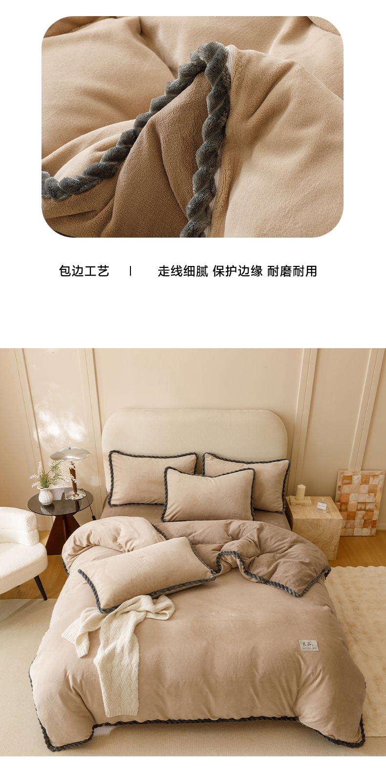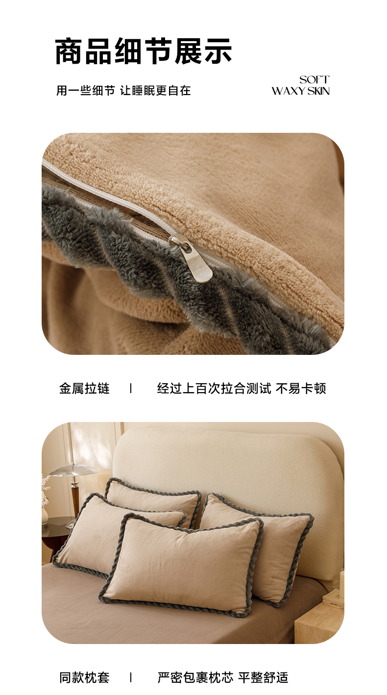 • 91家纺网 家纺一手货源 找家纺 早晨家纺 2025新款纯色双拼牛奶绒-可拆卸冬被 双拼米驼+奶茶咖