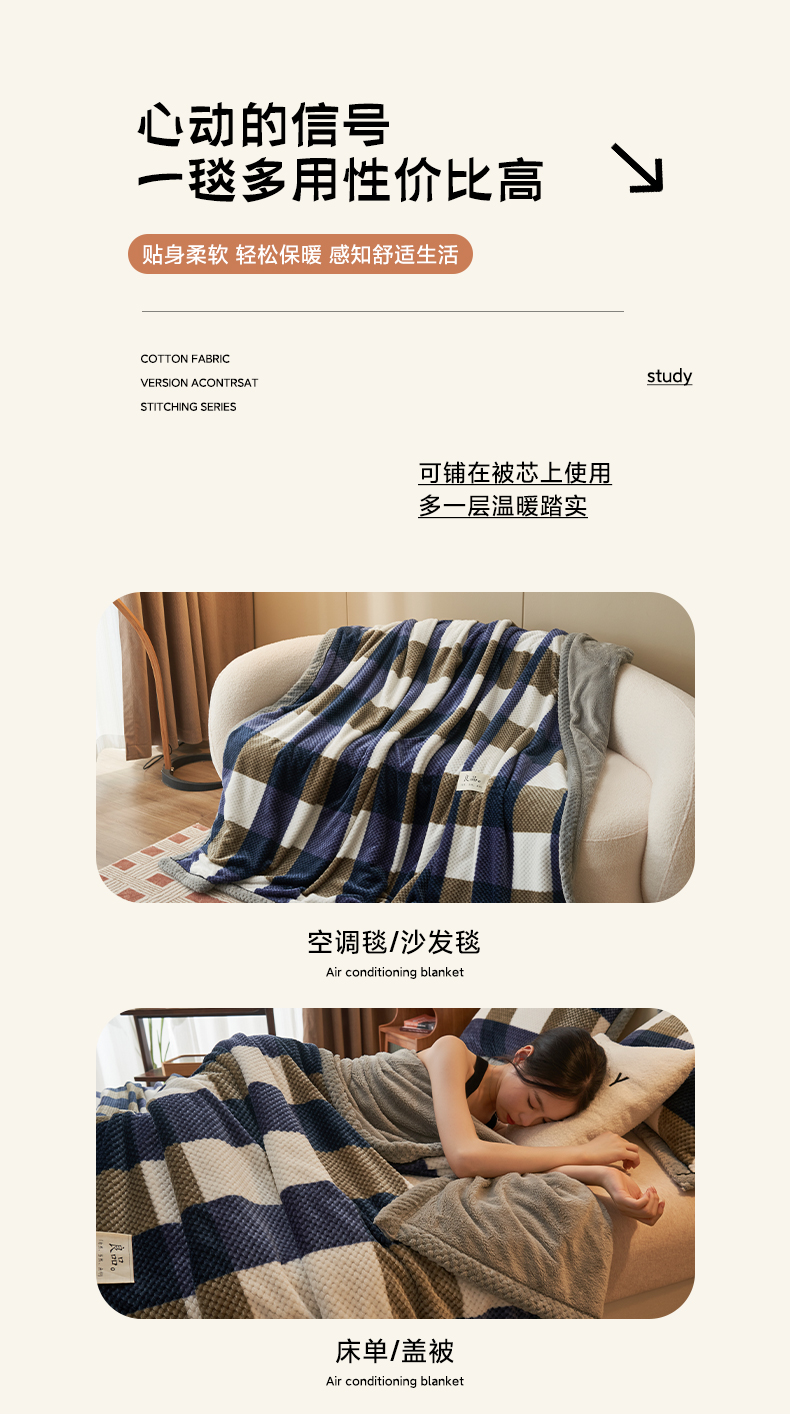 当前位置: 91家纺网 > 商品网购 > 毛毯休闲毯绒毯 > 毛毯 > 早晨家纺 2025新款豆豆绒-无印双层毛毯【拉链款】 豆豆绒-大方格蓝