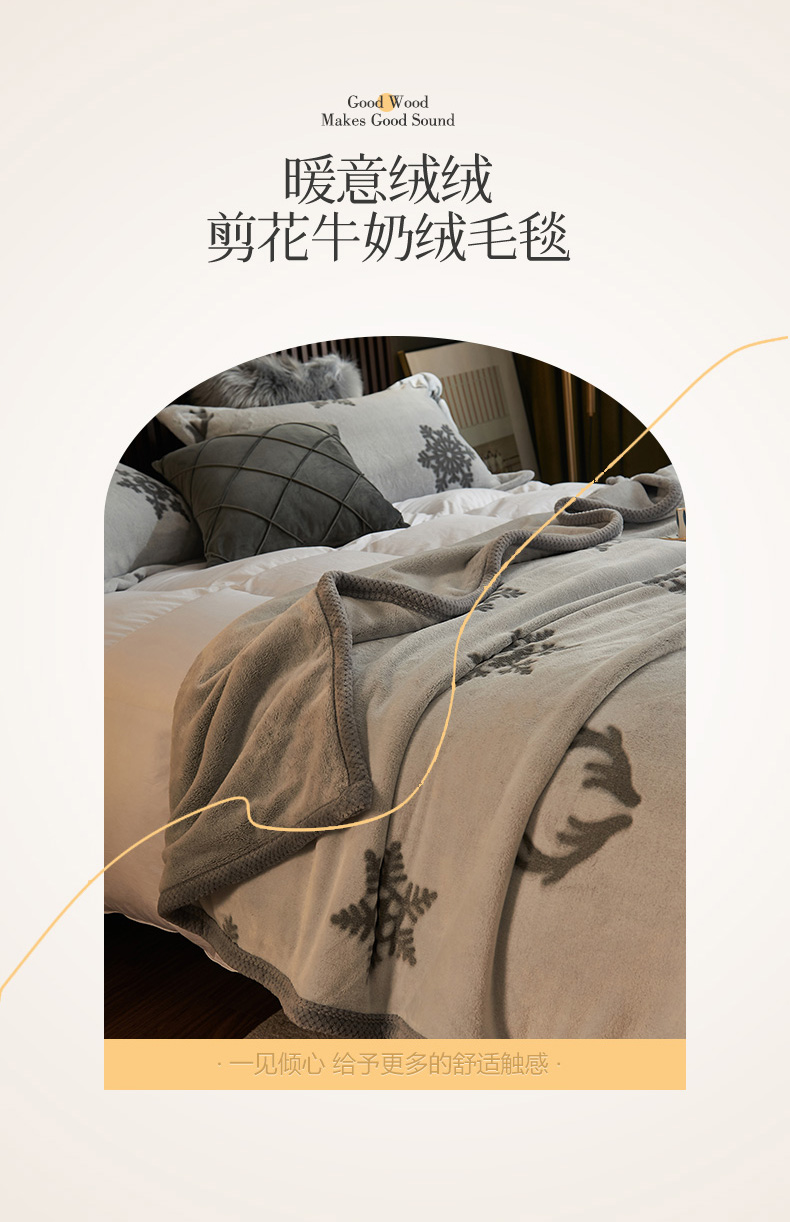 早晨家纺 2025新款北影款-印花单层毛毯 北影雪花-灰