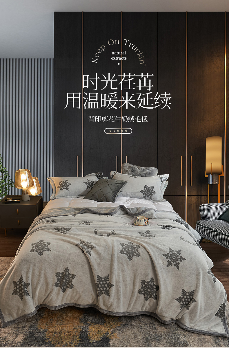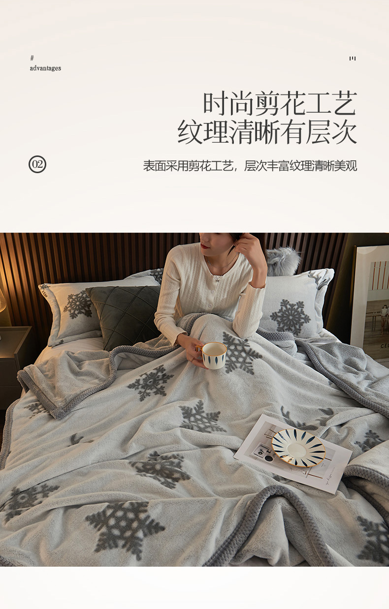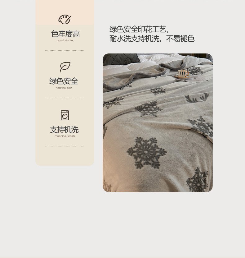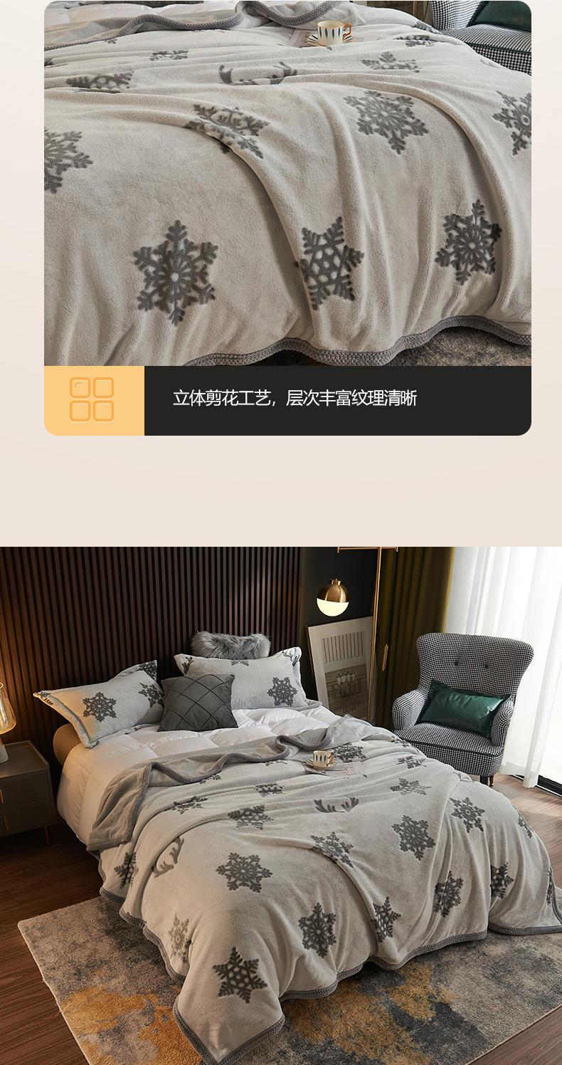 商品名称:早晨家纺 2025新款北影款-印花单层毛毯 北影雪花-灰