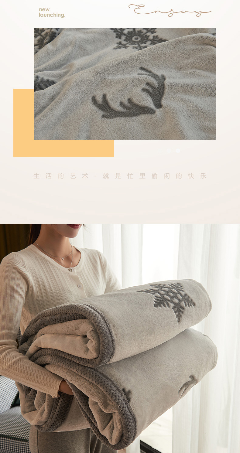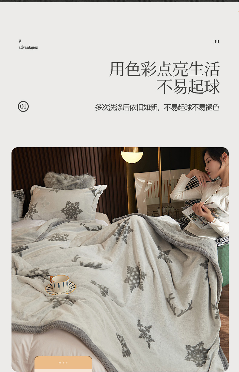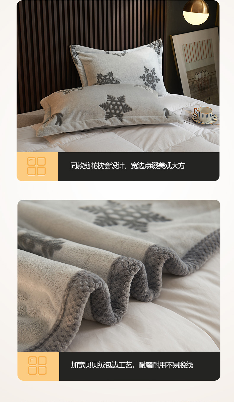商品名称:早晨家纺 2025新款北影款-印花单层毛毯 北影雪花-灰