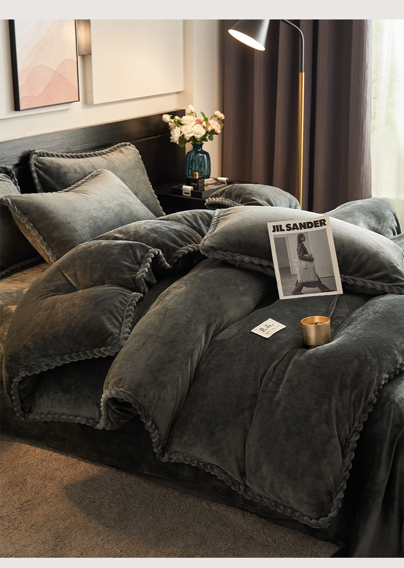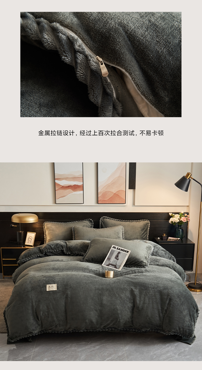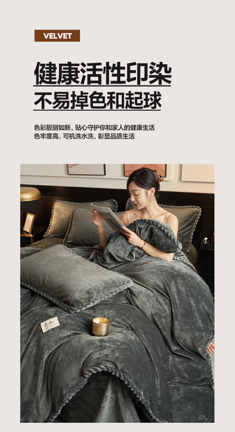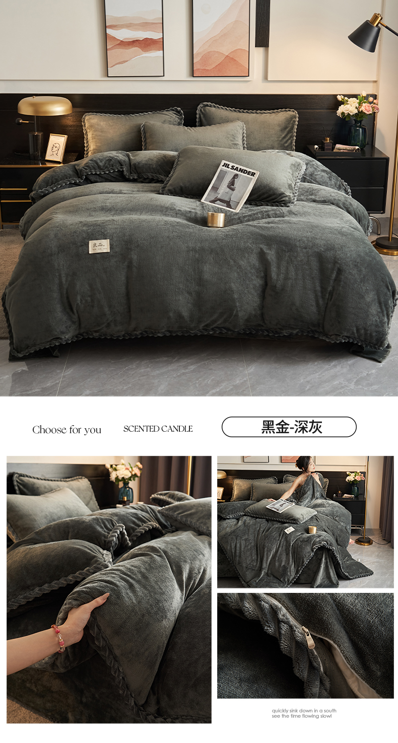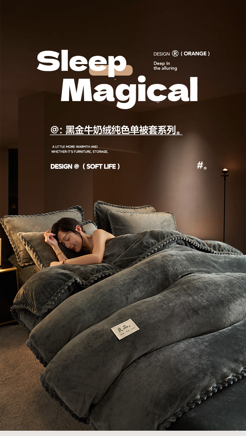 • 91家纺网 家纺一手货源 找家纺 早晨家纺 2025新款黑金牛奶绒纯色-单被套系列风格1 黑金-深灰