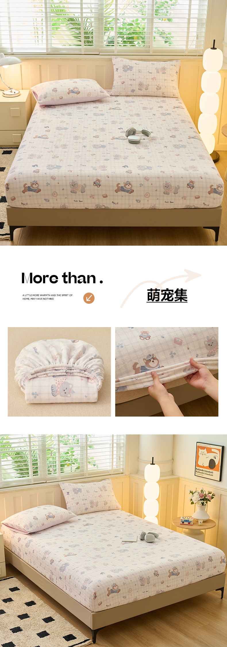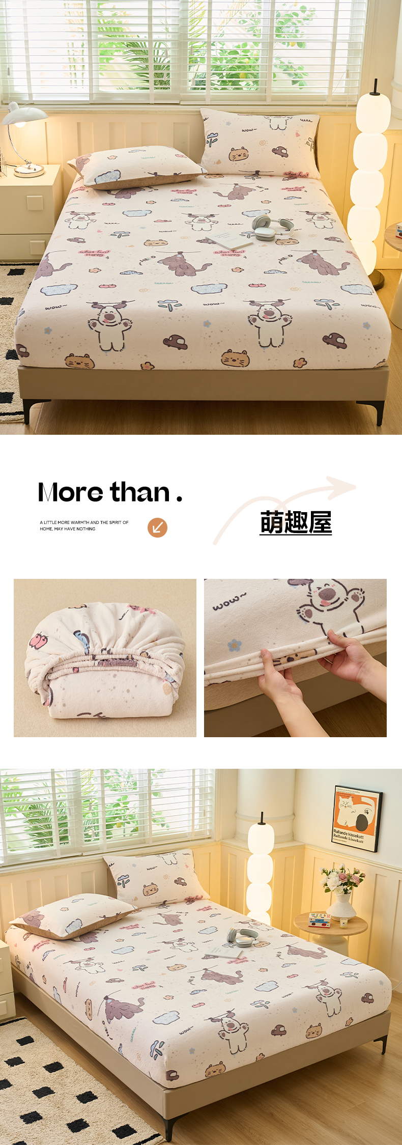 • 91家纺网 家纺一手货源 找家纺 早晨家纺 2025新款卡通印花高克重牛奶绒印花单床笠 萌趣屋