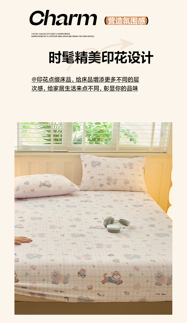 早晨家纺 2025新款卡通印花高克重牛奶绒印花单床笠 萌趣屋