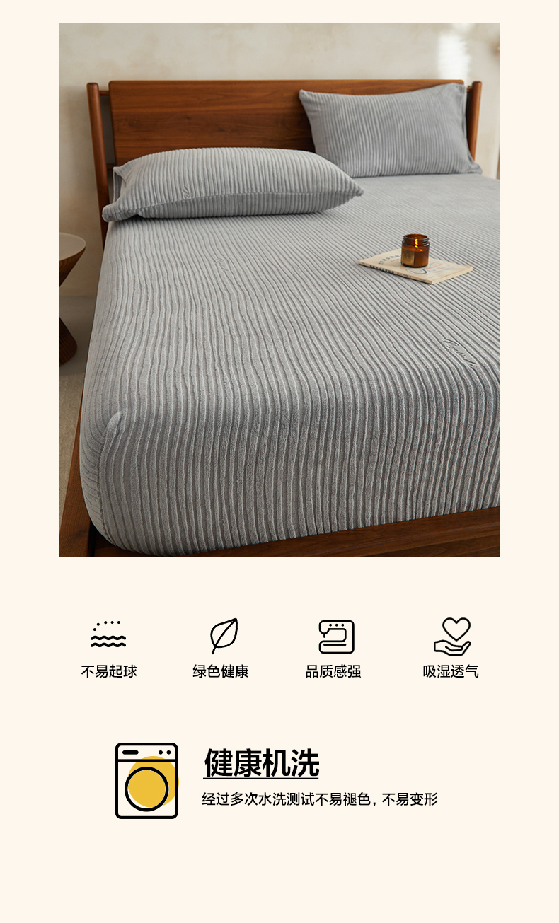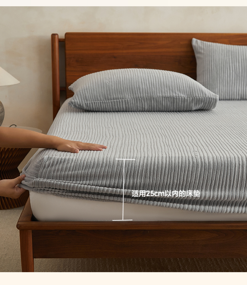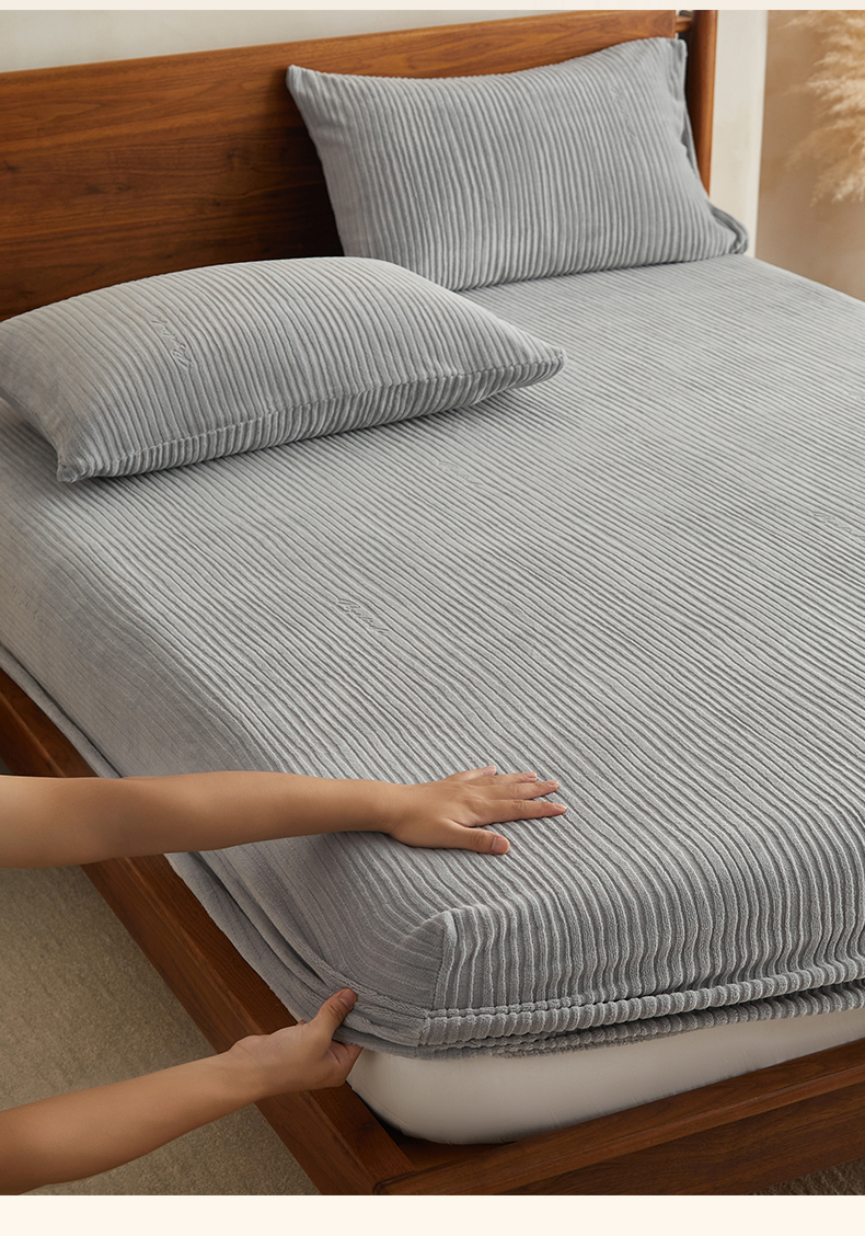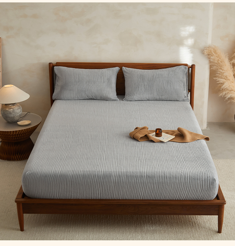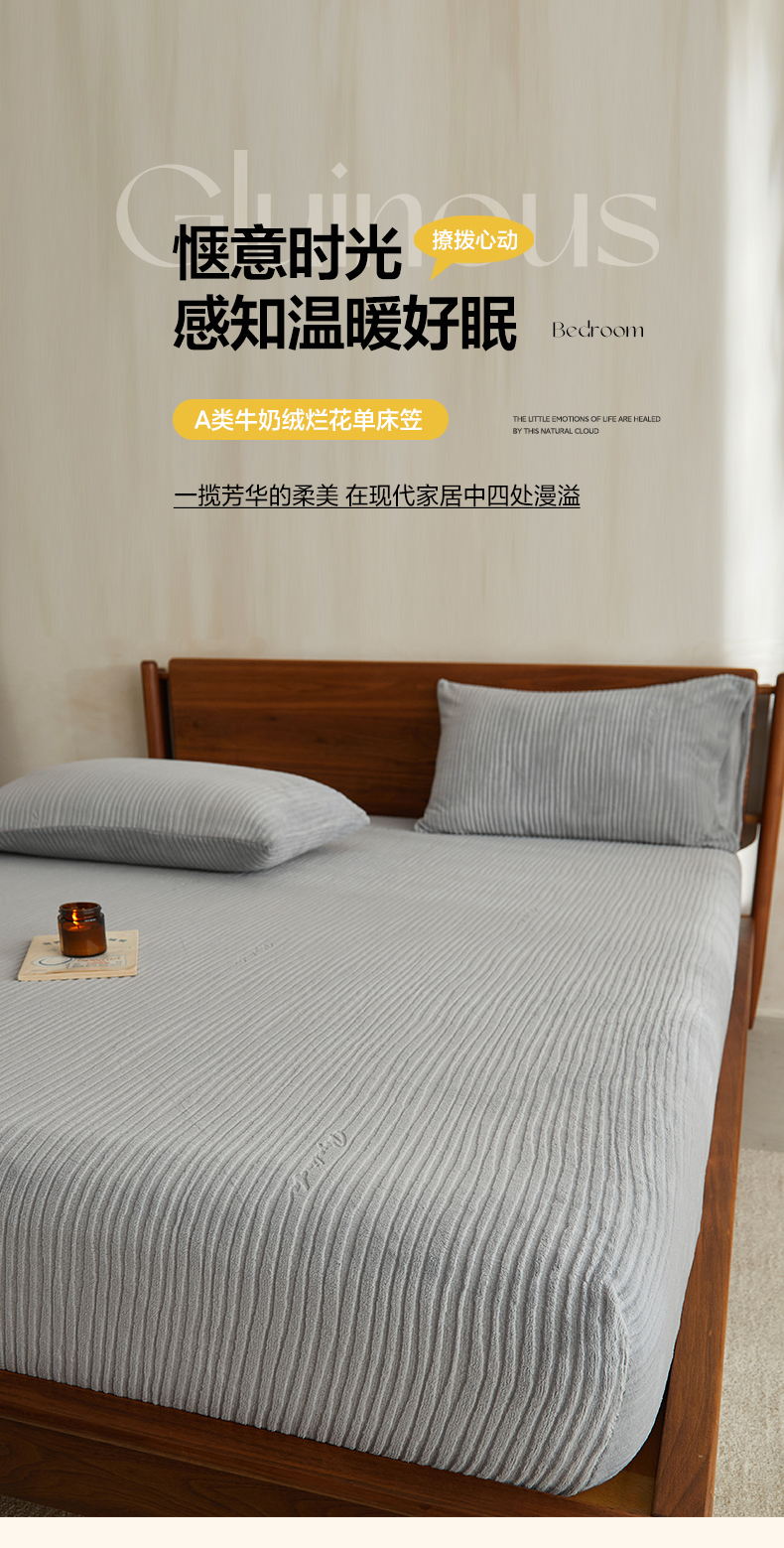 • 91家纺网 家纺一手货源 找家纺 早晨家纺 2025新款红金龙纯色烂花牛奶绒床笠 恬憩-银灰