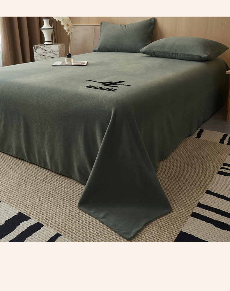 早晨家纺 2025新款牛奶绒纯色毛巾绣暖绒床单 时尚-橘色