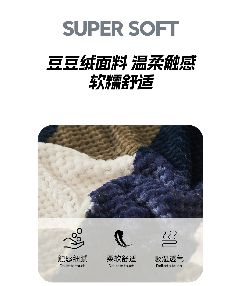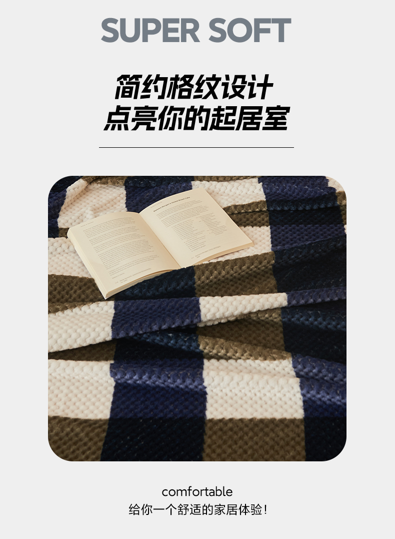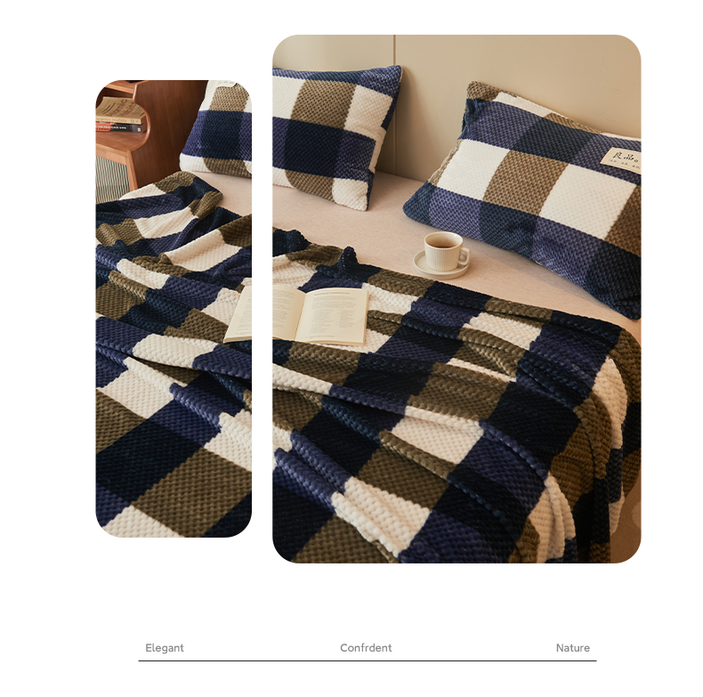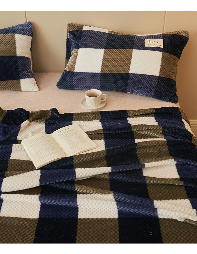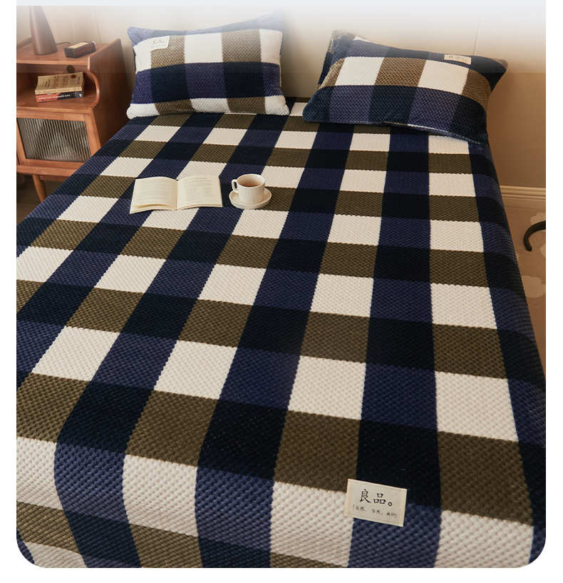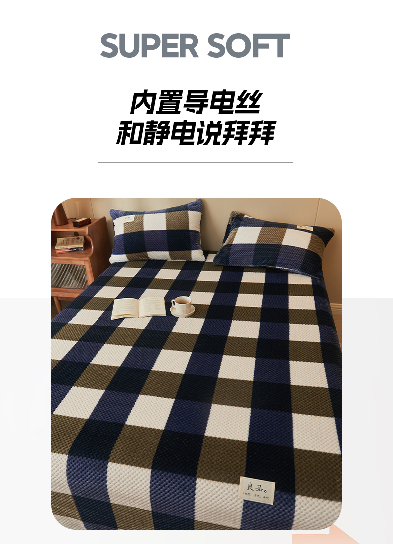 商品名称:早晨家纺 2025新款豆豆款高克重牛奶绒菠萝格无印风床单 豆豆绒-大方格蓝