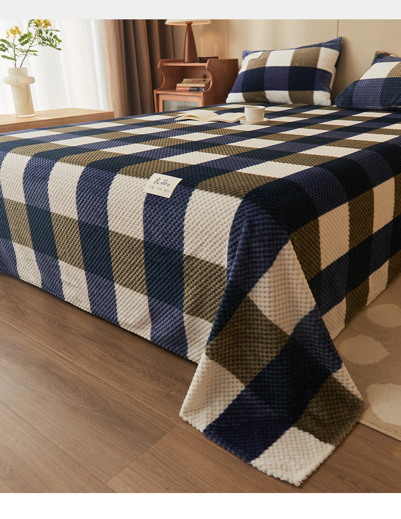 早晨家纺 2025新款豆豆款高克重牛奶绒菠萝格无印风床单 豆豆绒-大方格蓝