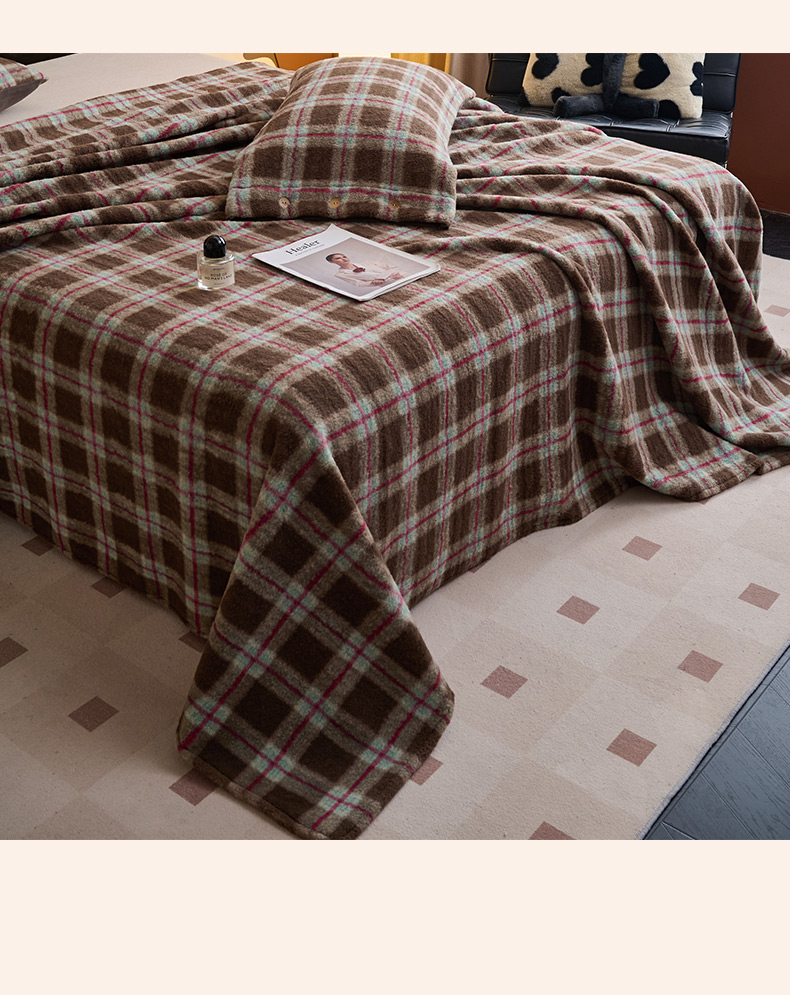 商品名称:早晨家纺 2025新款230g羊驼绒复古格牛奶绒床单 雾里青格