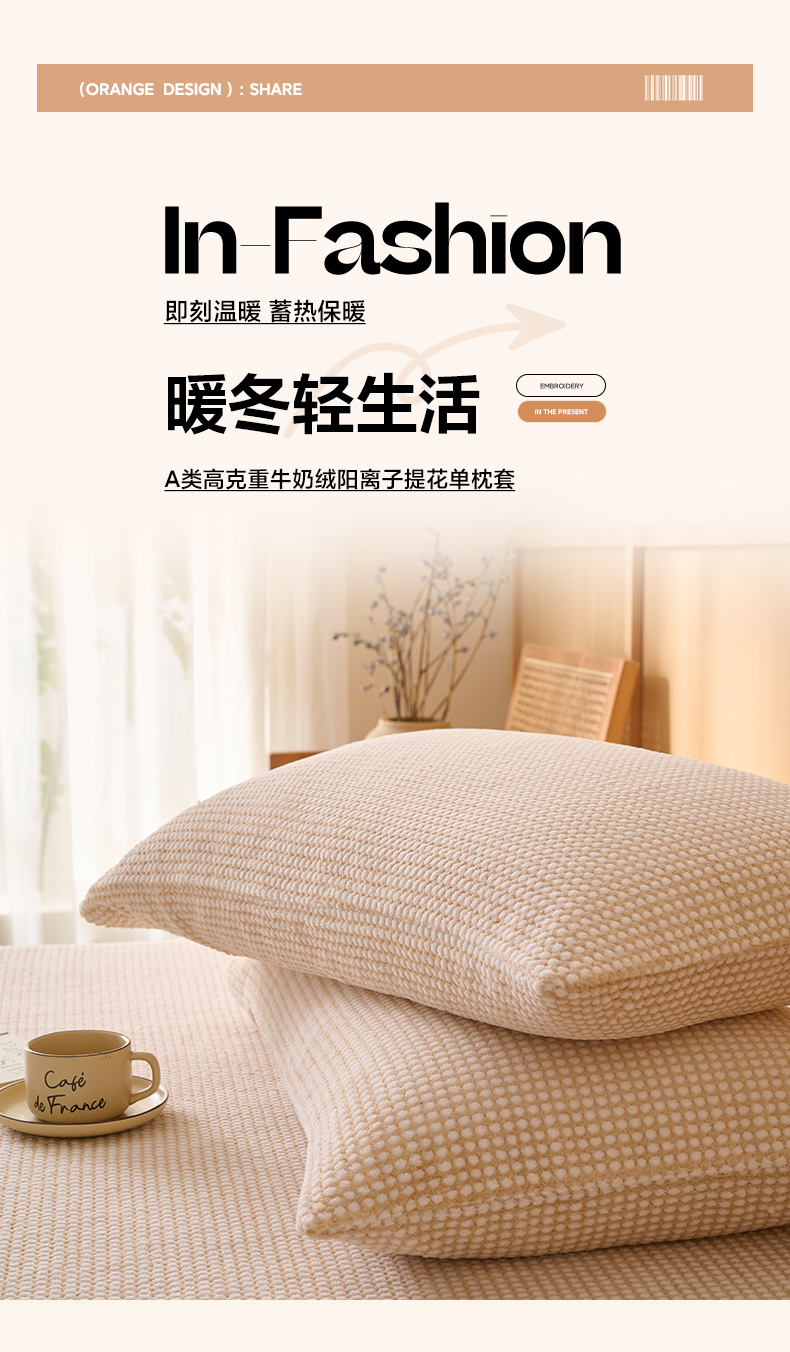 早晨家纺 2025新款深蓝款高克重牛奶绒阳离子提花单枕套 深蓝-绿