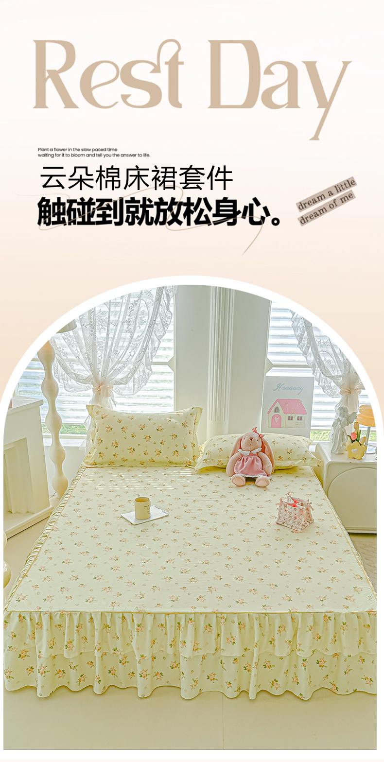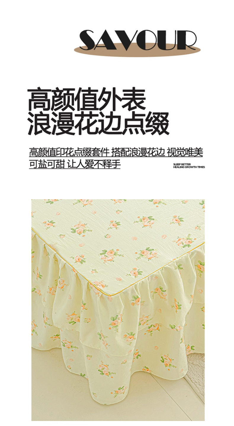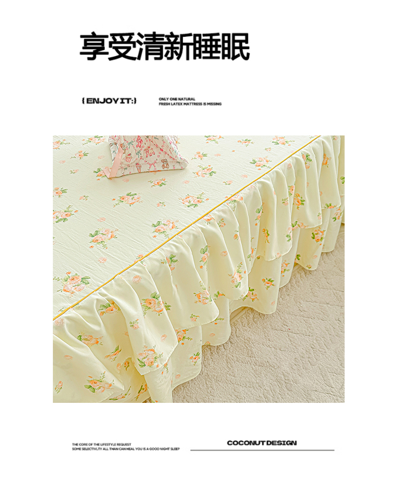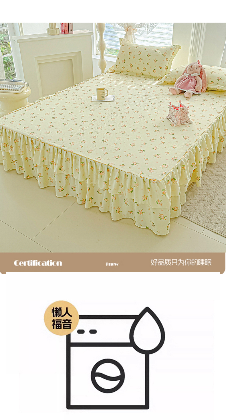 商品名称:子钦家纺 2025新款云朵棉水洗棉韩版双层花边公主风床裙床裙三件套 床裙-仲夏