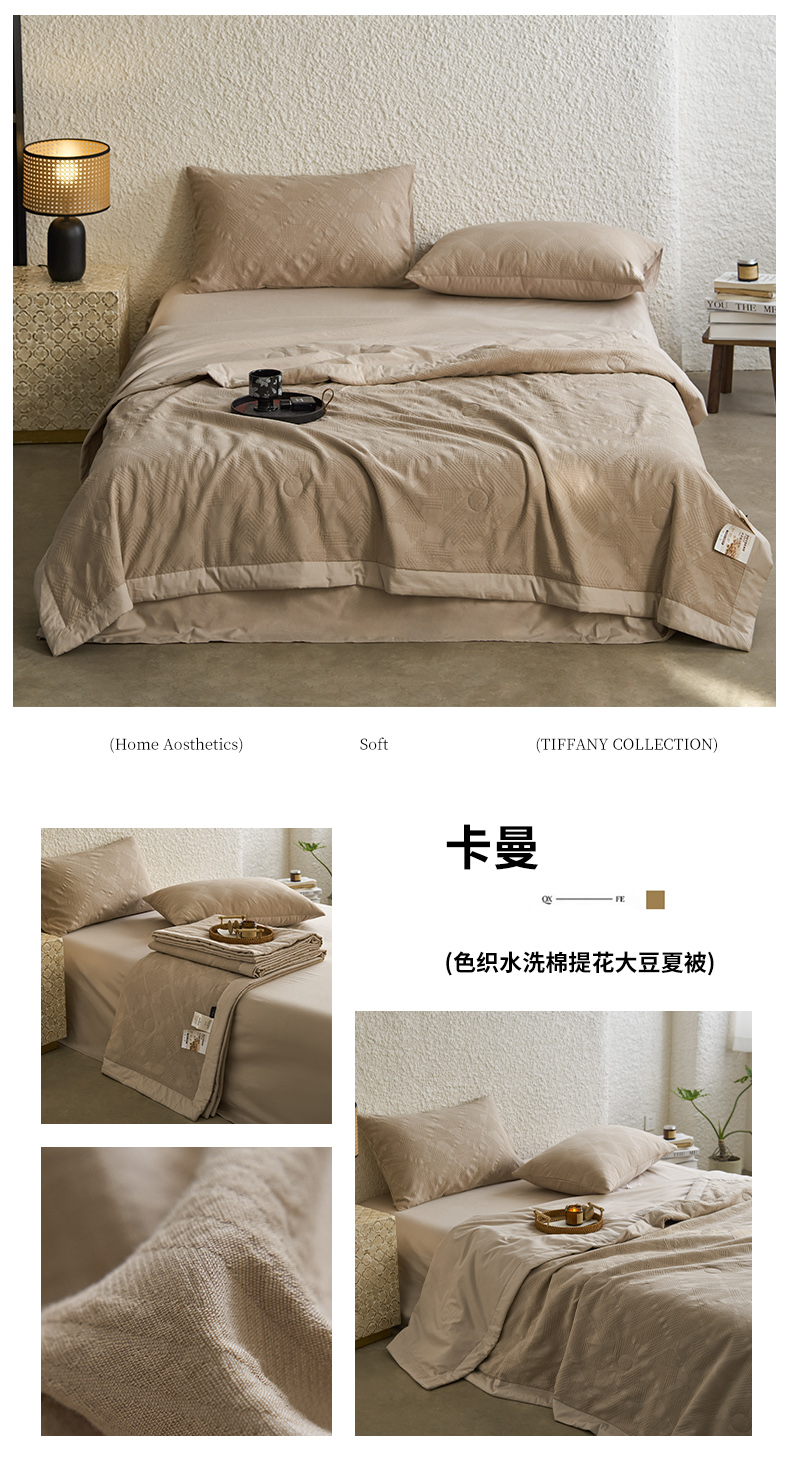 • 91家纺网 家纺一手货源 找家纺 宜代光年 2025新款60s水洗棉全棉提花夏被 牡丹-咖