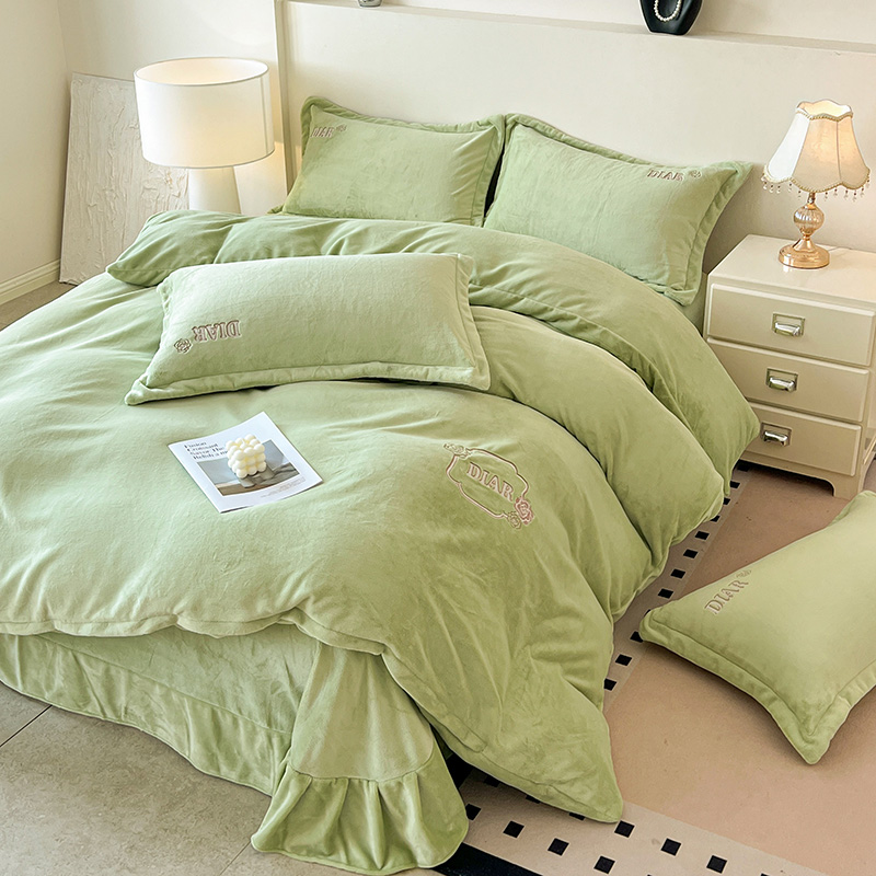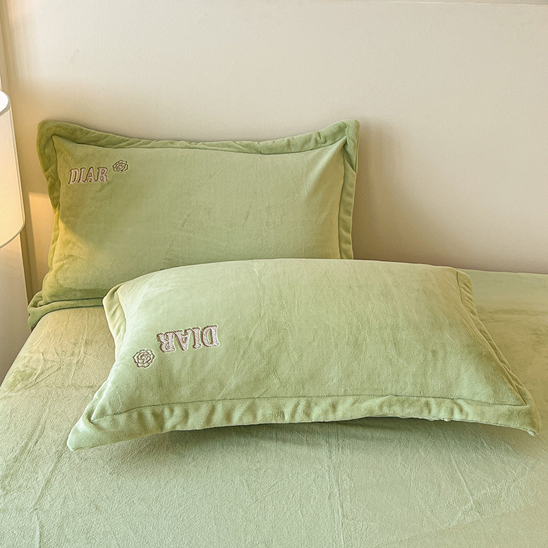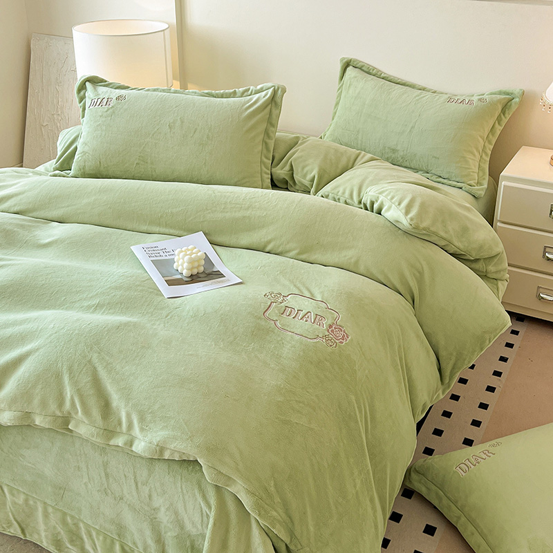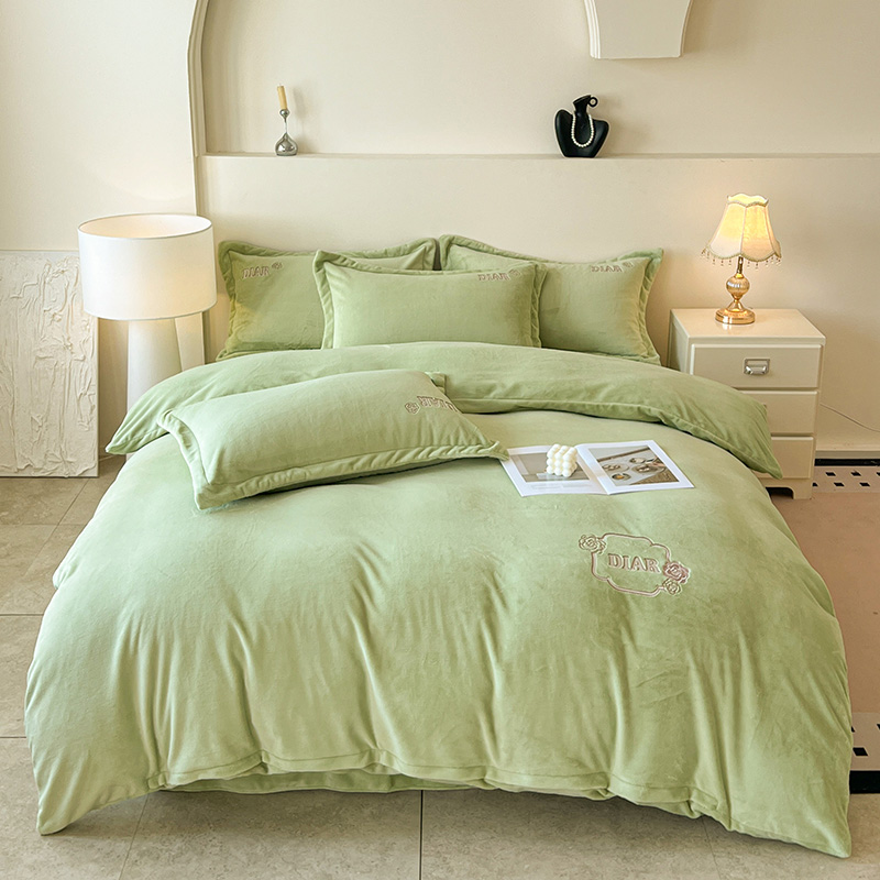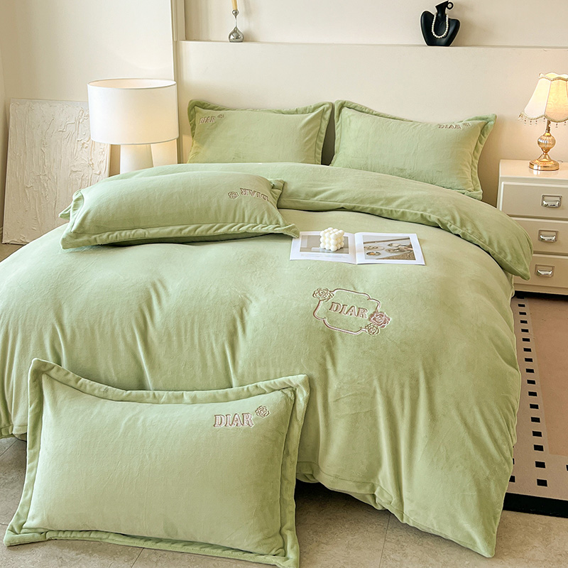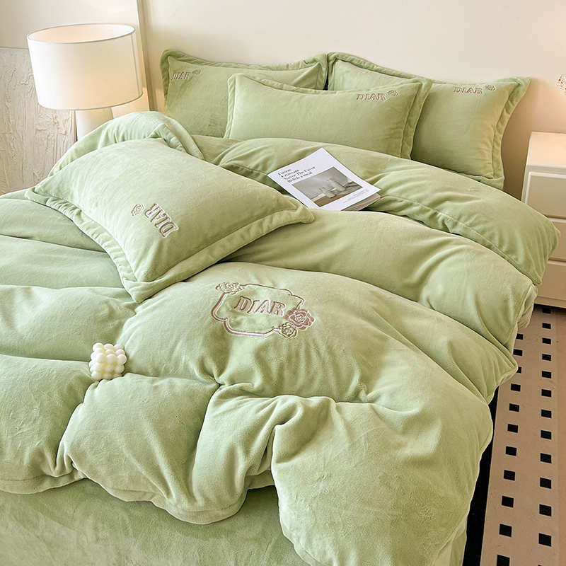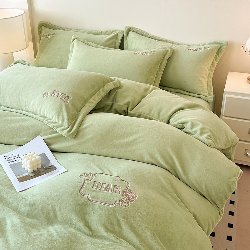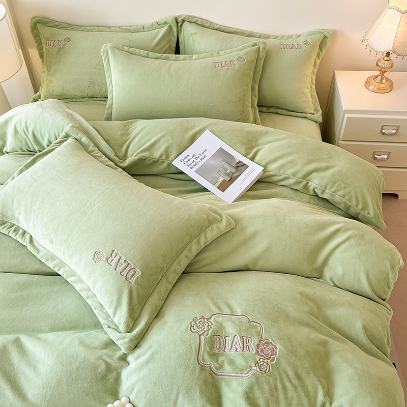 梦莱斯 2025全消光加厚牛奶绒四件套 - 山茶花系列 山茶花-绿