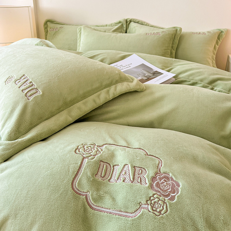 商品名称:梦莱斯 2025全消光加厚牛奶绒四件套 - 山茶花系列 山茶花-绿
