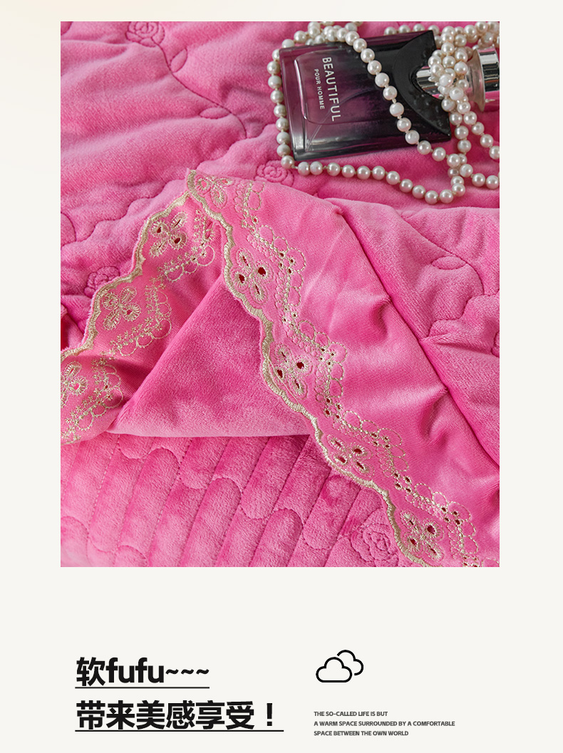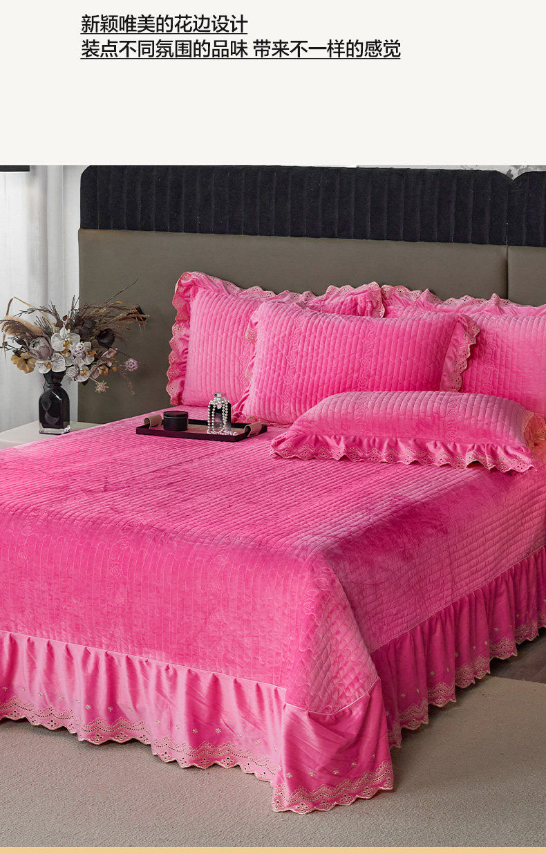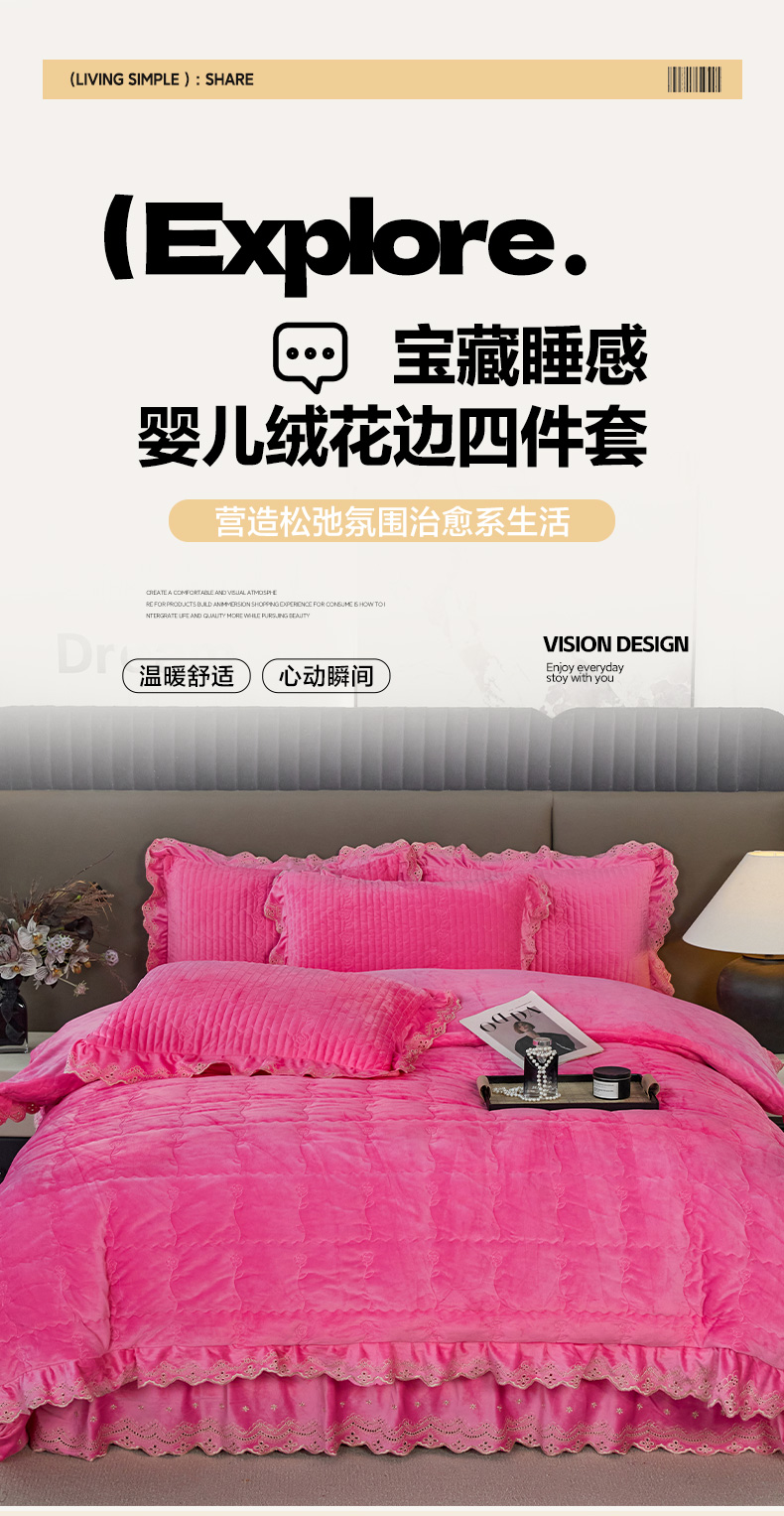 商品名称:青竹苑 2025新款婴儿绒宝宝绒玫瑰版床盖款四件套 慕达-妍红