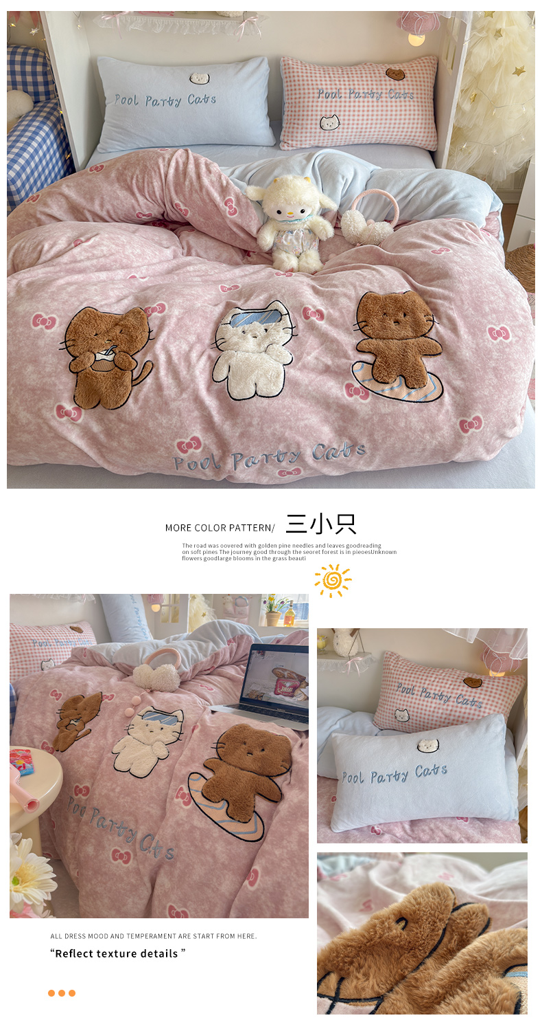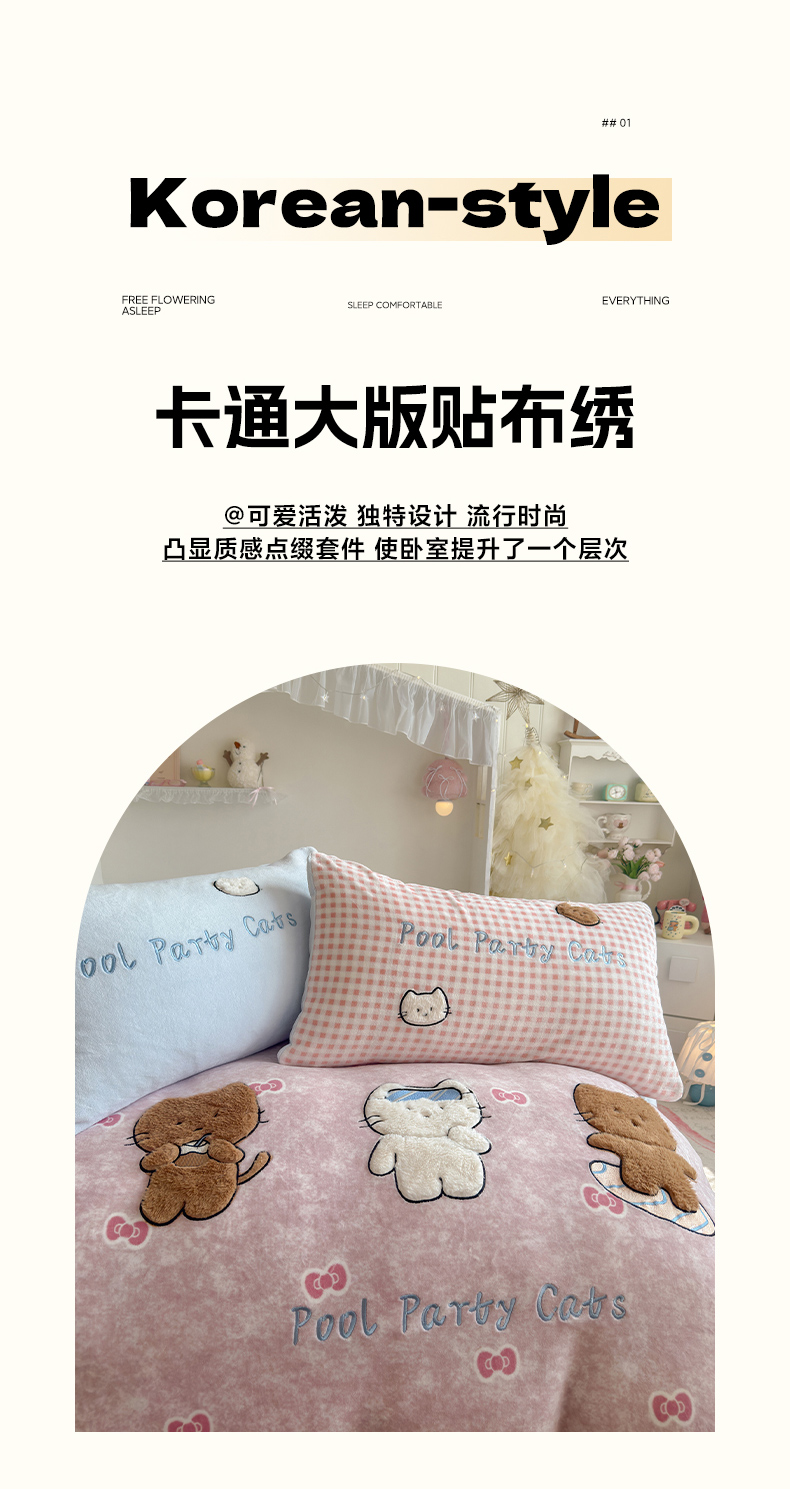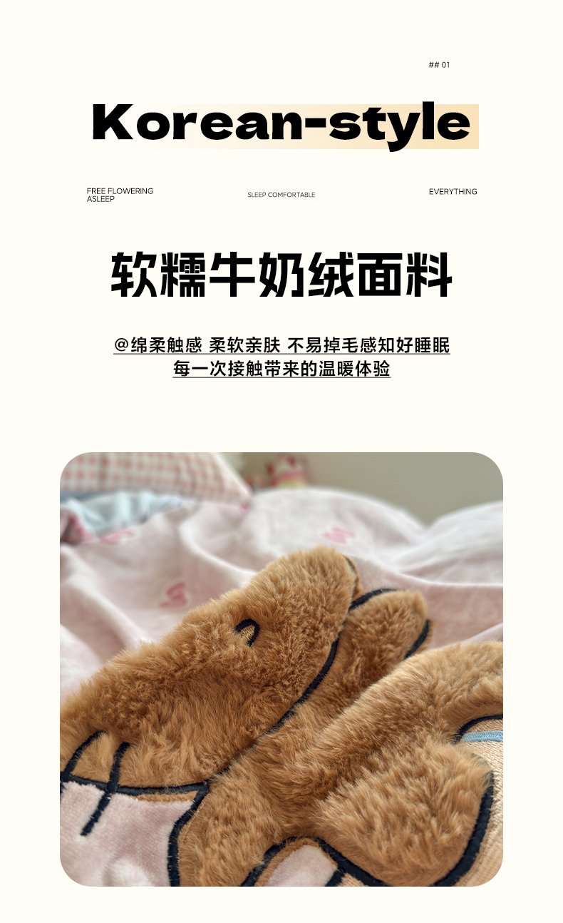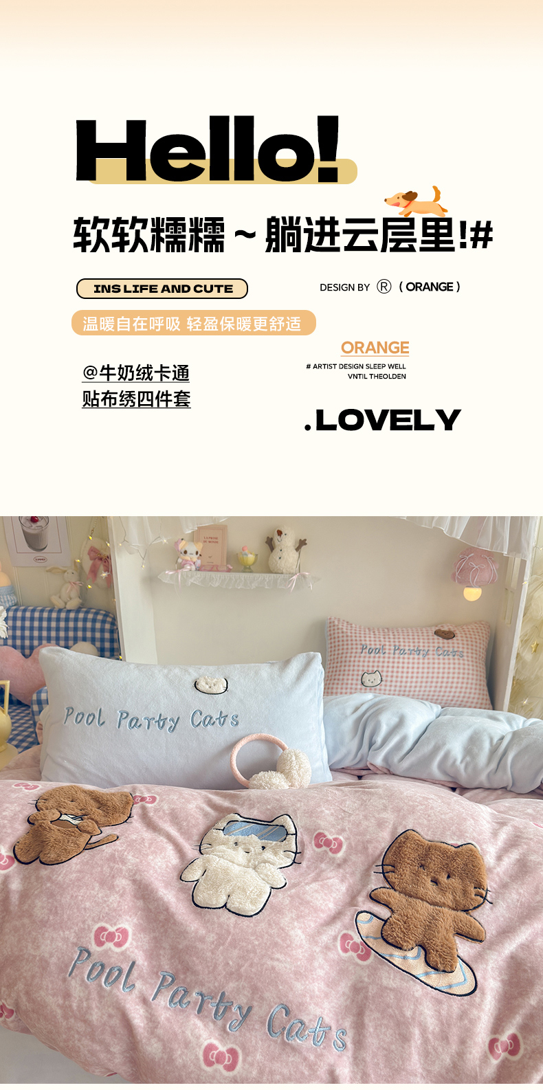 当前位置: 91家纺网 > 商品网购 > 床品套件 > 四件套 > 牛奶绒四件套 > 罗亿家纺 2025新款A类兔毛贴布绣刺绣牛奶绒四件套-小红书推荐(提供买家秀) 三小只