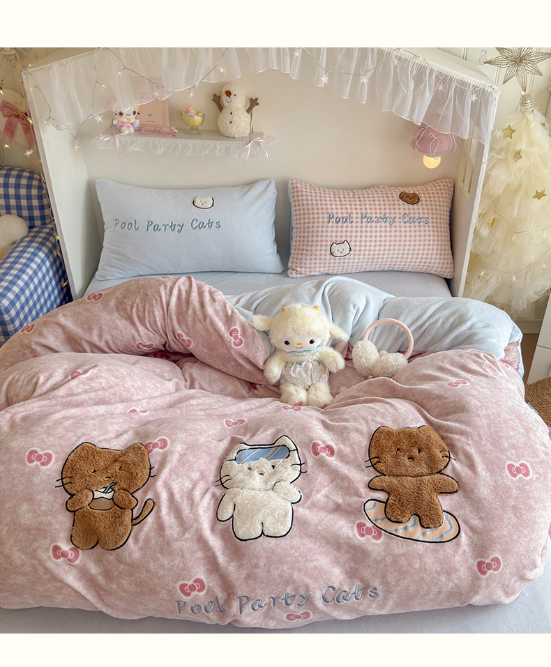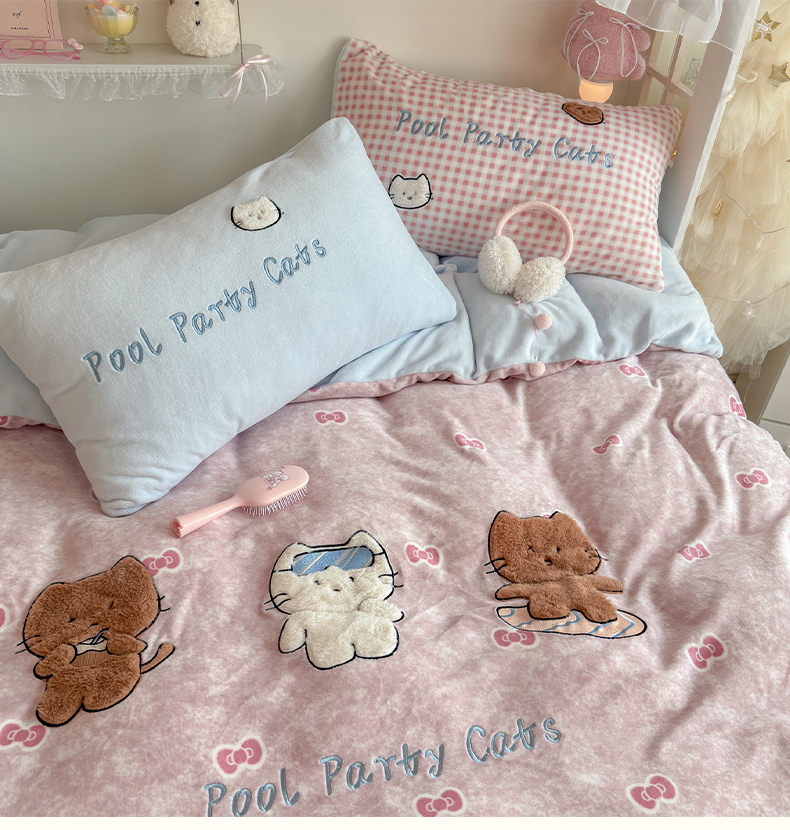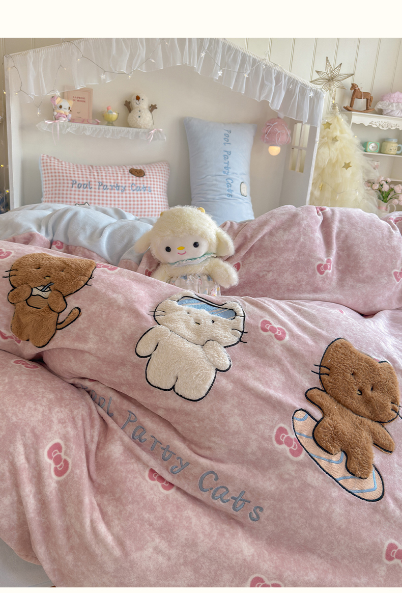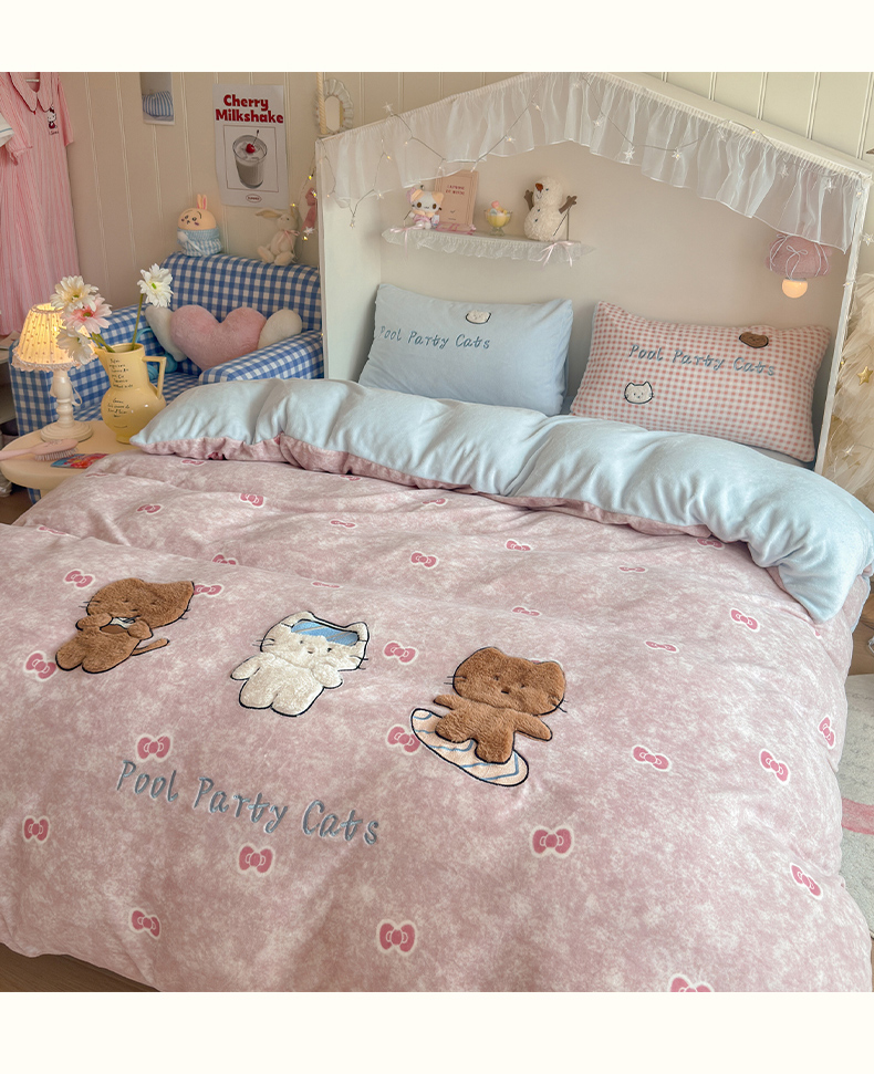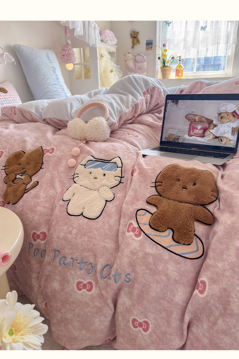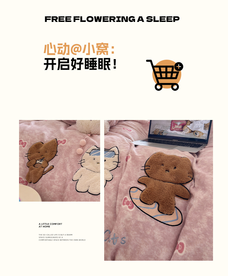 当前位置: 91家纺网 > 商品网购 > 床品套件 > 四件套 > 牛奶绒四件套 > 罗亿家纺 2025新款A类兔毛贴布绣刺绣牛奶绒四件套-小红书推荐(提供买家秀) 三小只