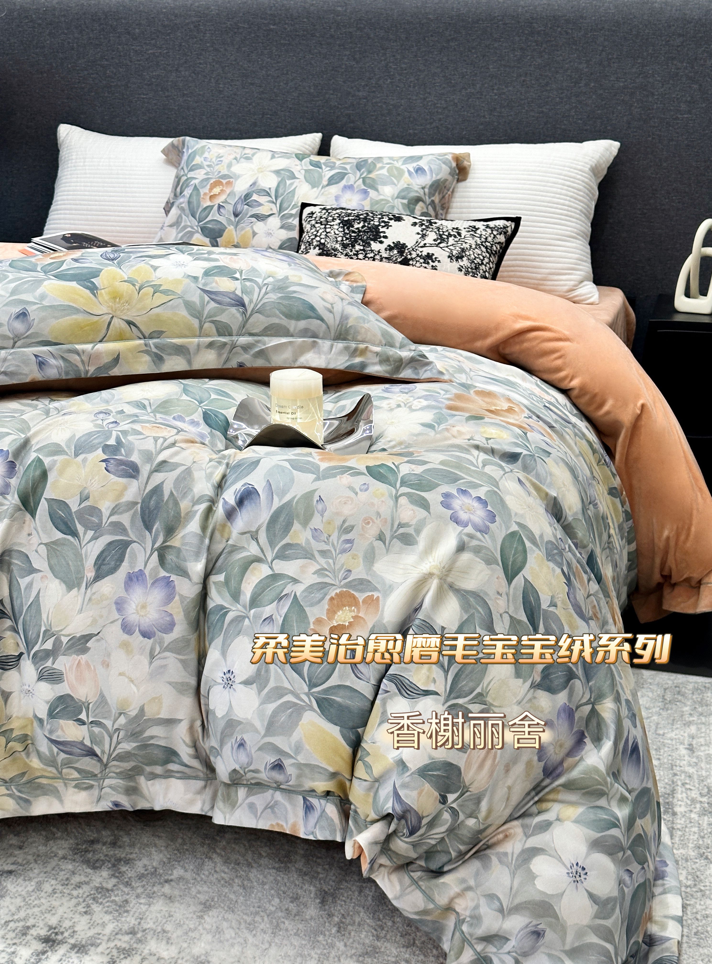 商品名称:JUICY 橘滋家纺 2025新款柔美治愈系磨毛宝宝绒系列四件套 曼彻斯特