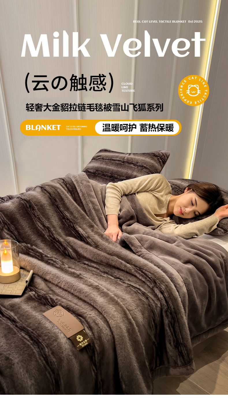 (总)慕木家纺 2025新款轻奢大金貂拉链毛毯被雪山飞狐系列