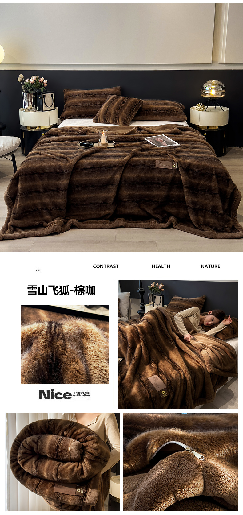 商品名称:(总)慕木家纺 2025新款轻奢大金貂拉链毛毯被雪山飞狐系列