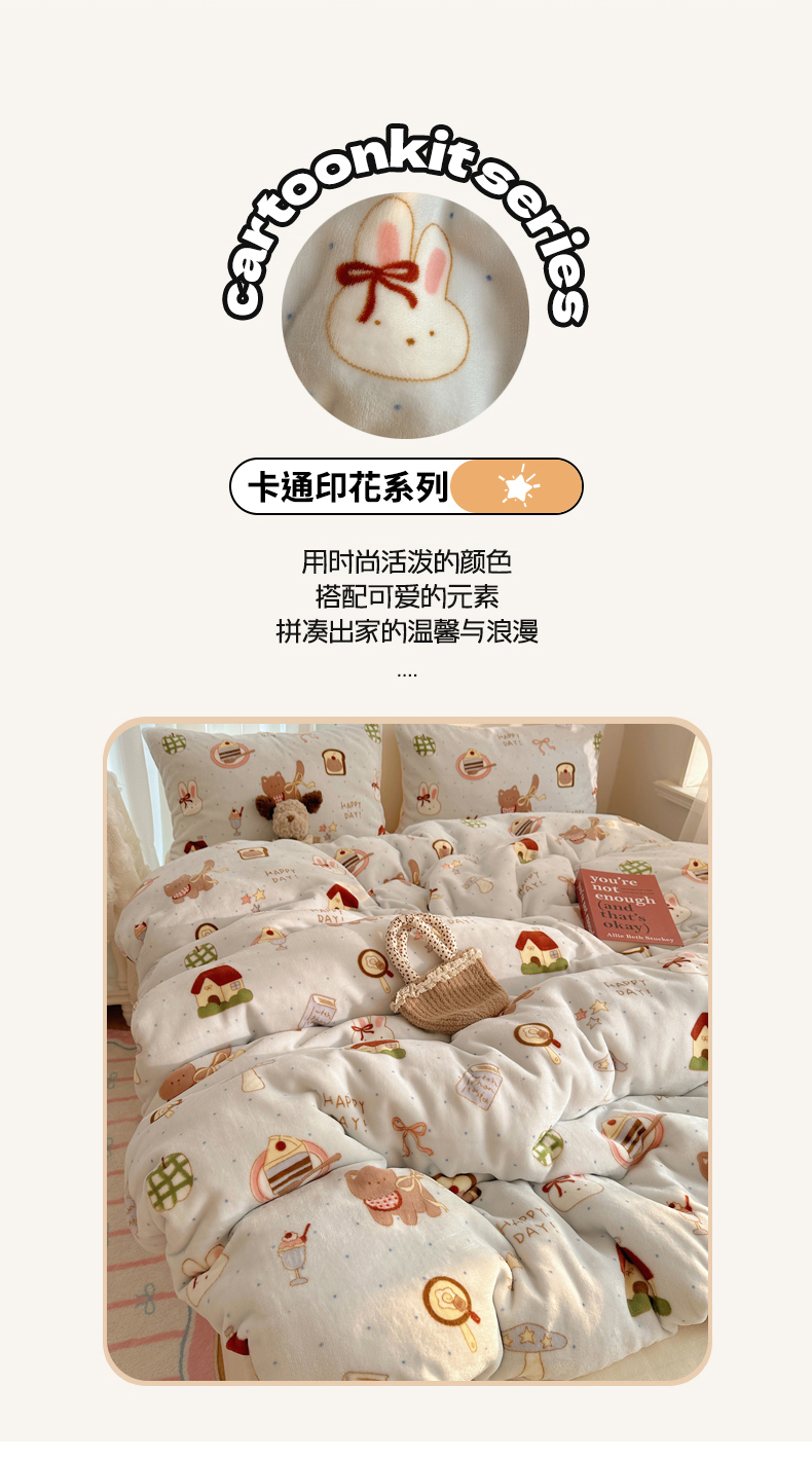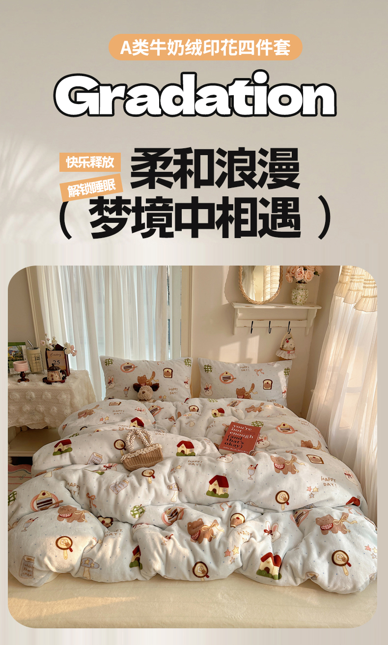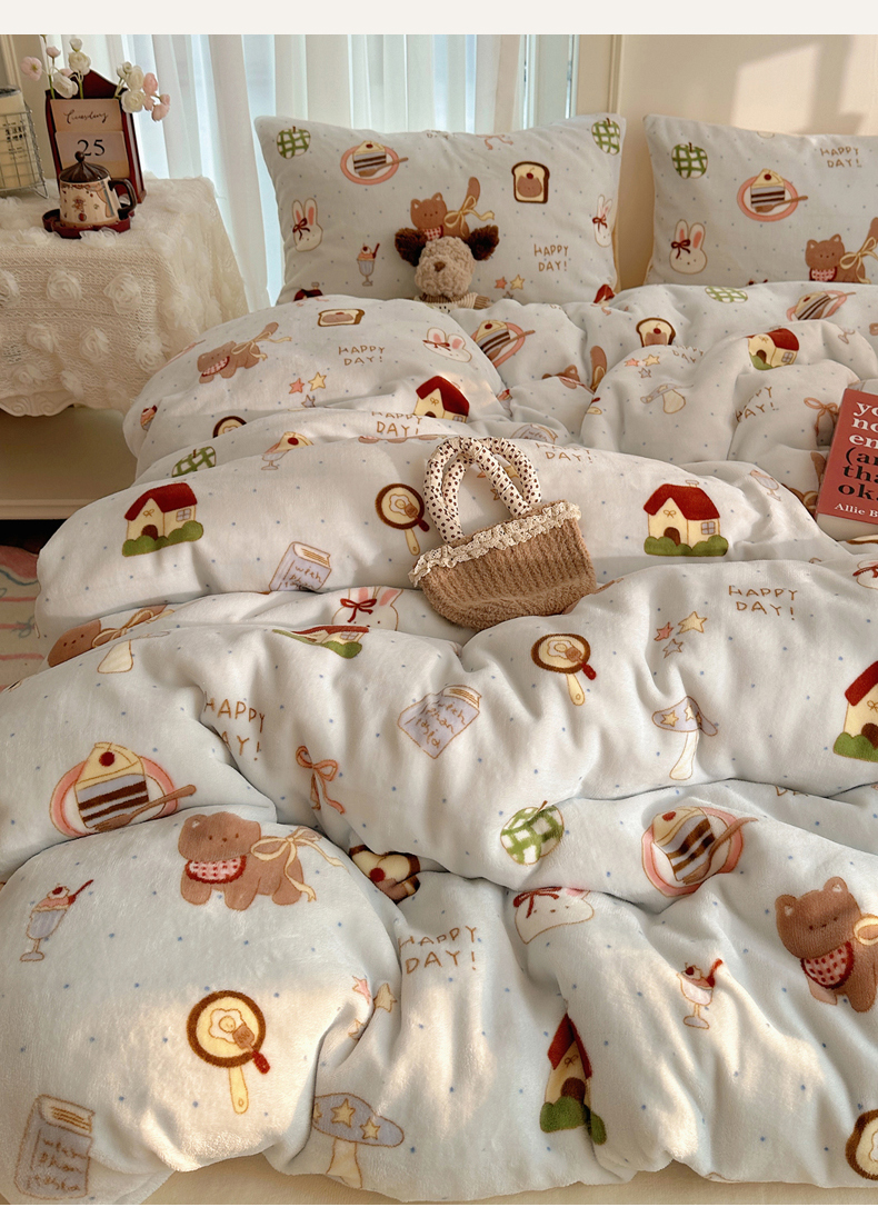 当前位置: 91家纺网 > 商品网购 > 床品套件 > 四件套 > 牛奶绒四件套 > 耀达家居 爆款2025新款ins小清新少女奶油卡通可爱加厚200克牛奶绒四件套 猫猫烘焙屋