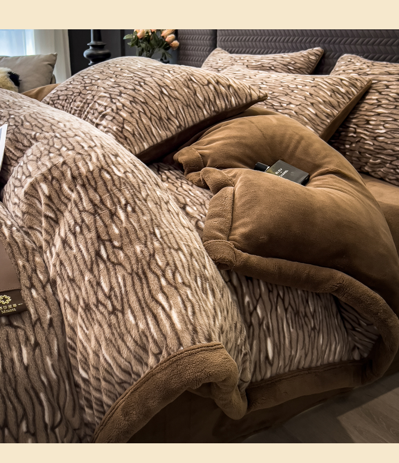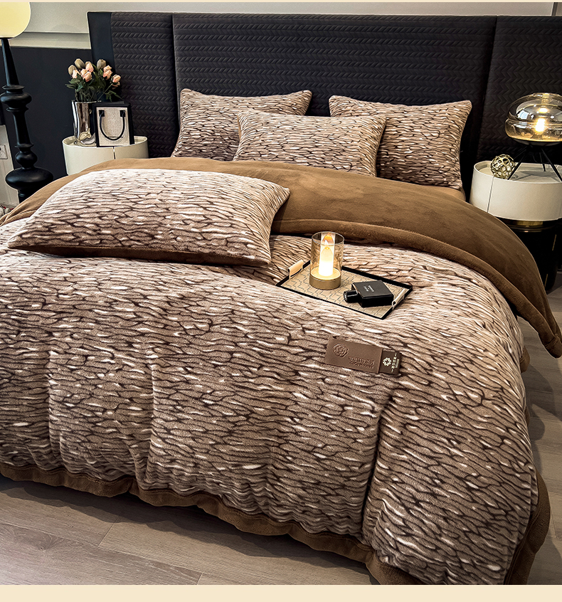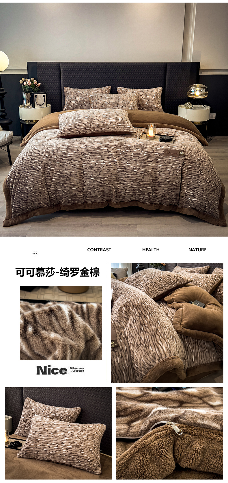 商品名称:慕木家纺 2025新款轻奢水貂四件套可可慕莎系列 可可慕莎-绮罗金棕