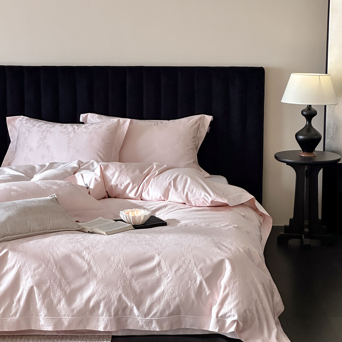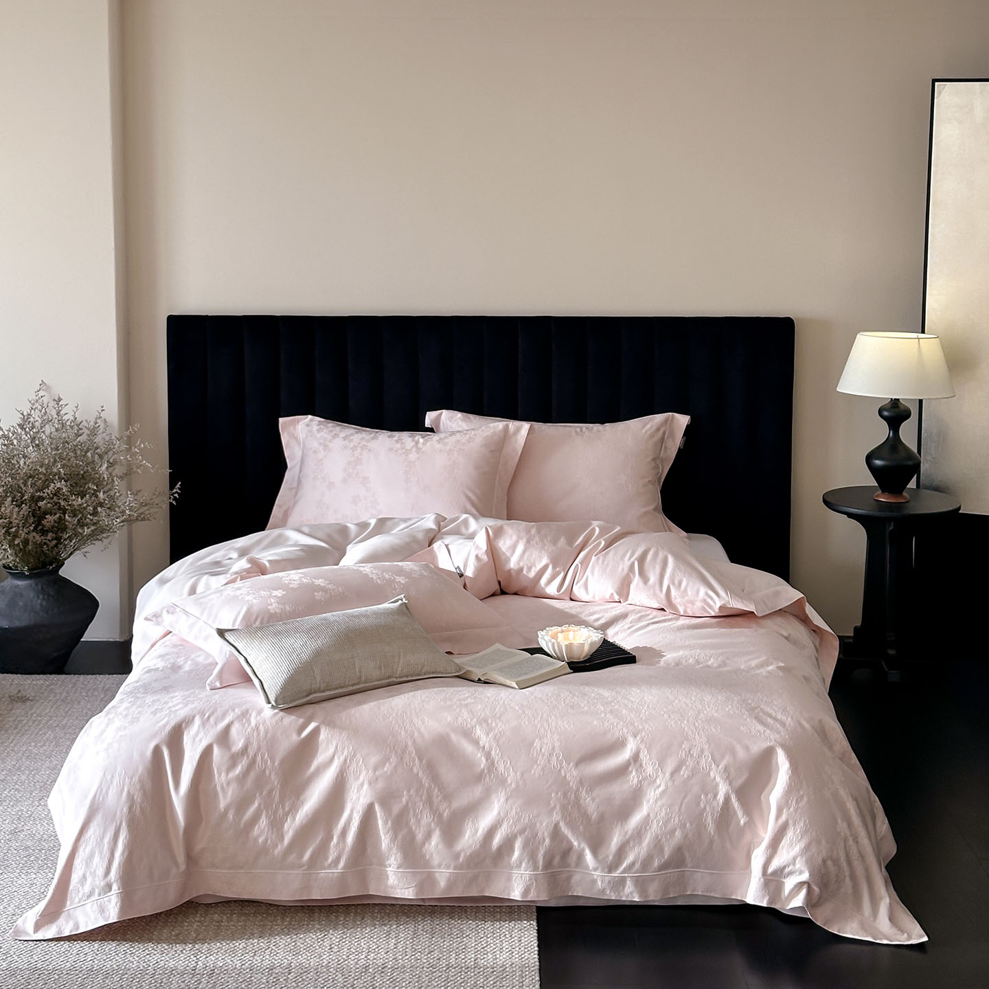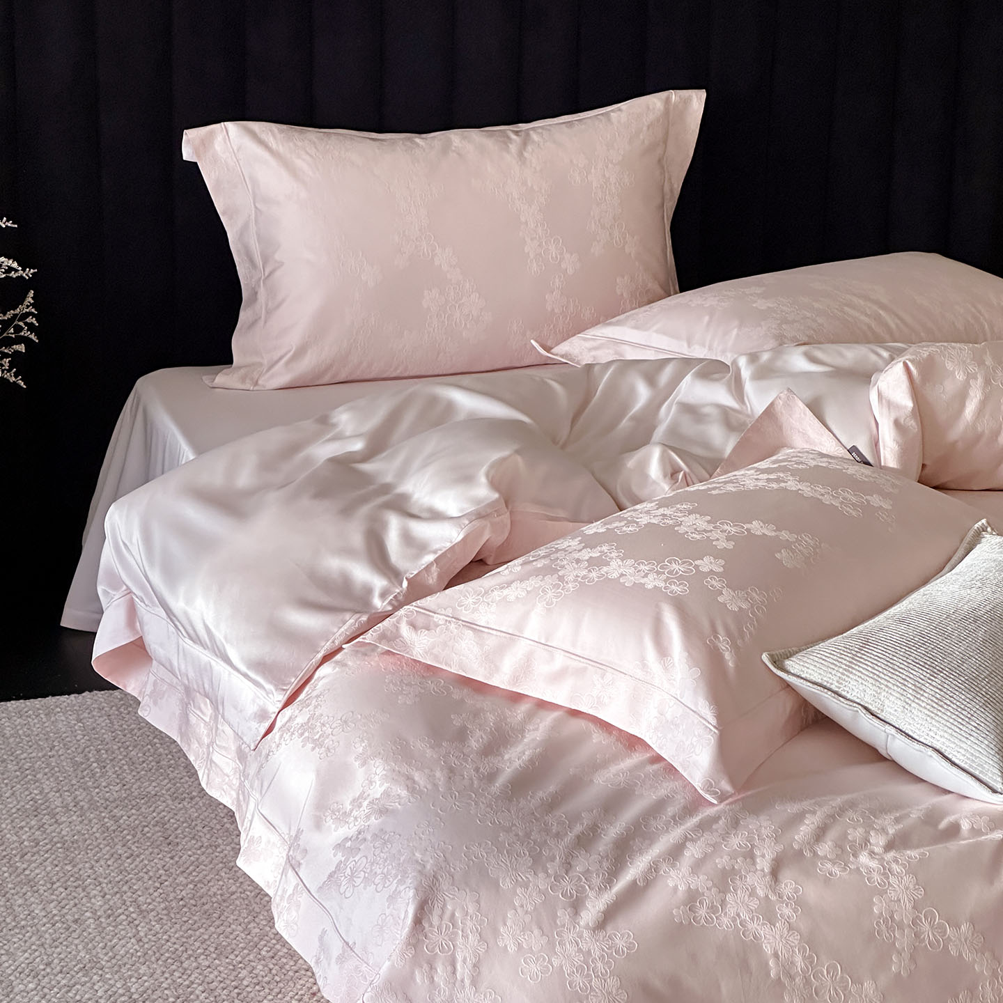 商品名称:MIU缪家居 2025新款100支全棉厚织提花简奢系列四件套-贝蒂 贝蒂 (桃粉)