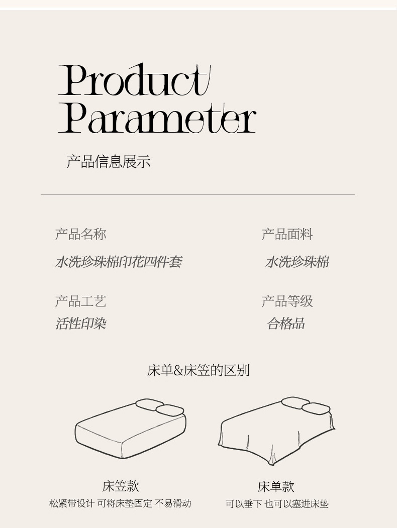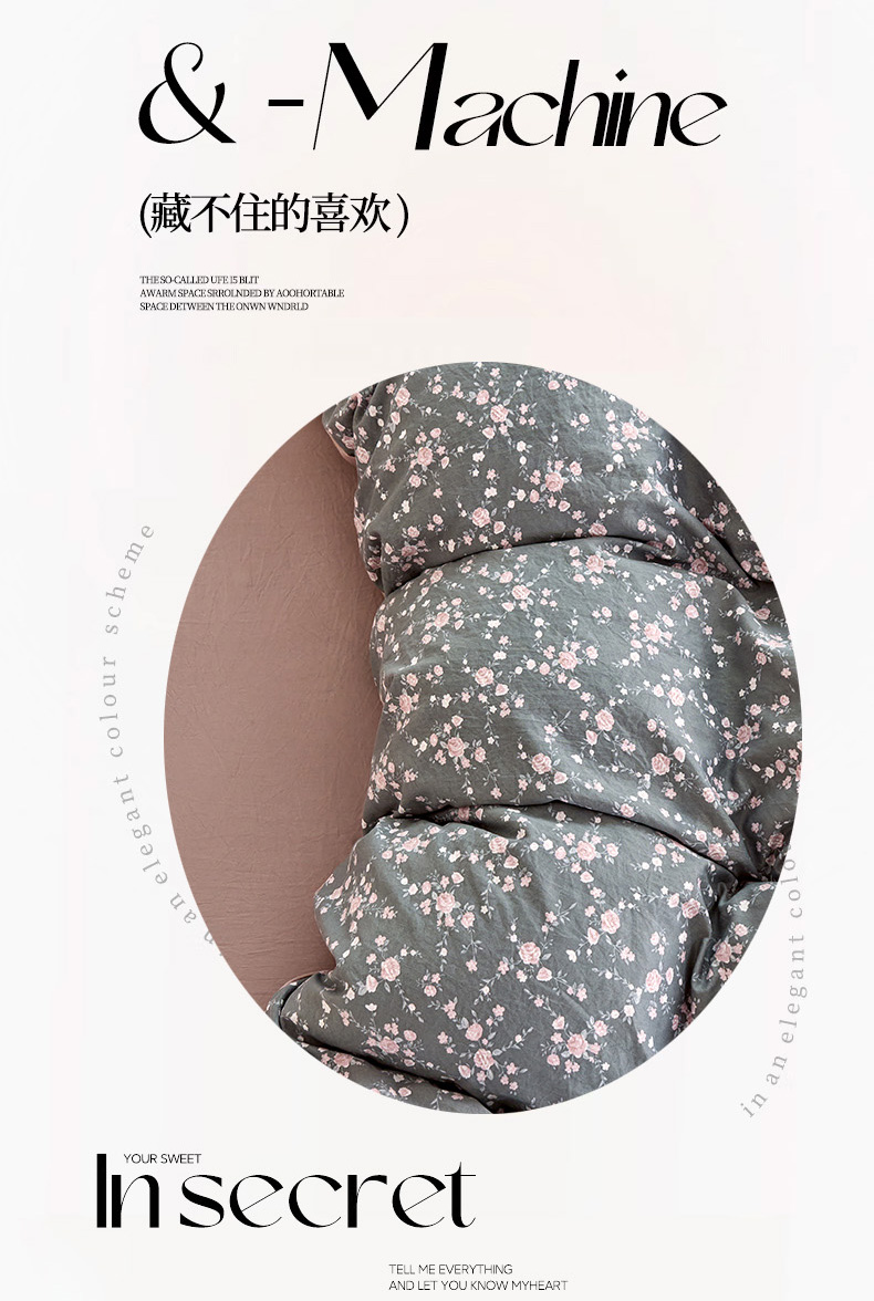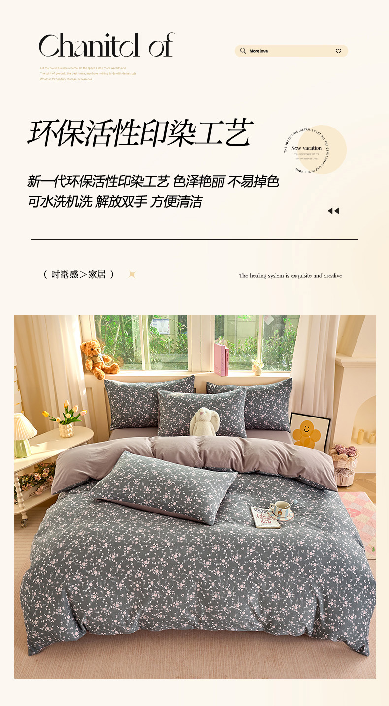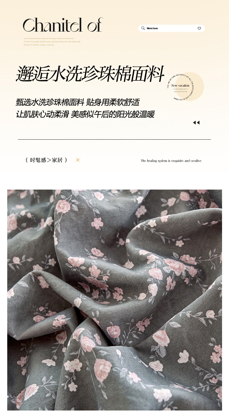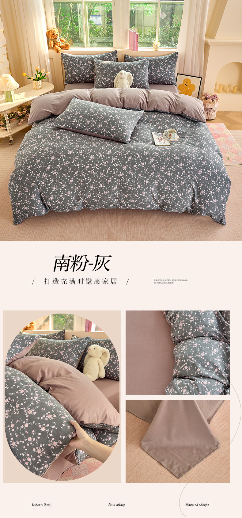 商品名称:卢赛尔 2025新款亲肤水洗珍珠棉印花单被套 南粉-灰