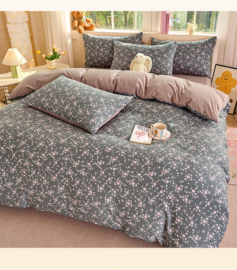 (总)卢赛尔 2025新款水洗珍珠印花四件套,暗香,蝴蝶结紫,南粉-灰,千姿,蔷薇-粉,秋草-灰,山茶-绿,格子-绿,甜心草莓,相思粉,小棕熊