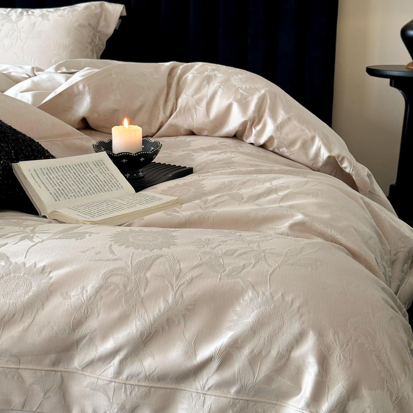 商品名称:MIU缪家居 2025新款100支全棉厚织提花简奢系列四件套-向日葵 向日葵(香槟)