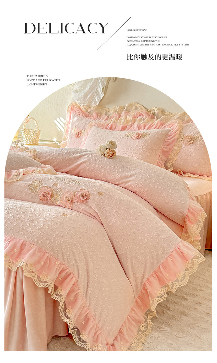 当前位置: 91家纺网 > 商品网购 > 床品套件 > 四件套 > 牛奶绒四件套 > 2025漫布云纺360g全消光牛奶绒工艺款蕾丝盘花立体雕花绒牛奶绒四件套刺绣绣花套件 温婉-梦幻紫