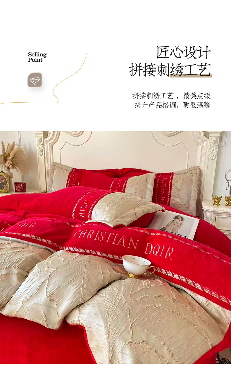 当前位置: 91家纺网 > 商品网购 > 床品套件 > 四件套 > 牛奶绒四件套 > 置顶家纺 2025新款轻奢牛奶绒拼接刺绣四件套-罗密欧 罗密欧牛奶绒-大红